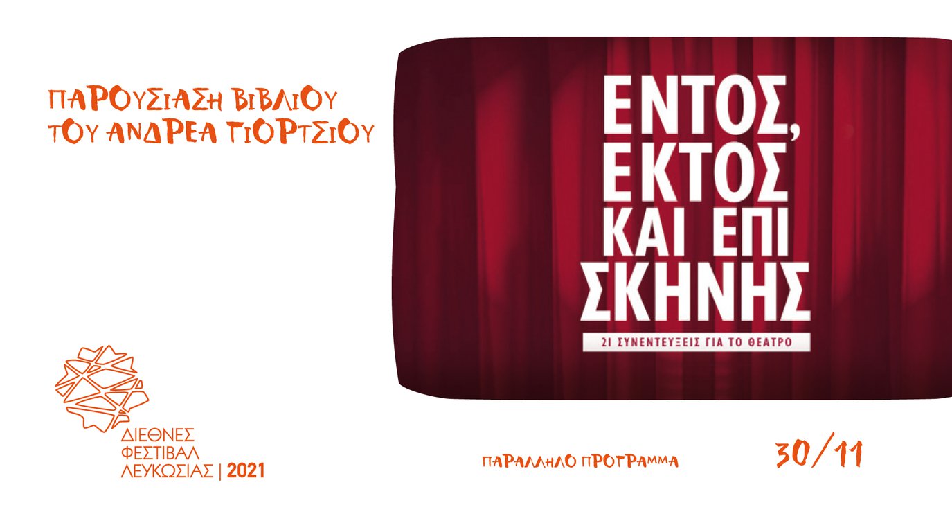 Ο δημοσιογράφος Ανδρέας Γιόρτσιος, παρουσιάζει το βιβλίο του «Εντός, εκτός και επί σκηνής. 21 συνεντεύξεις για το θέατρο» στο πλαίσιο του Παράλληλου Προγράμματος του Διεθνούς Φεστιβάλ Λευκωσίας την Τρίτη 30 Νοεμβρίου στις 18:00 στο Δημοτικό Θέατρο Λευκωσίας.