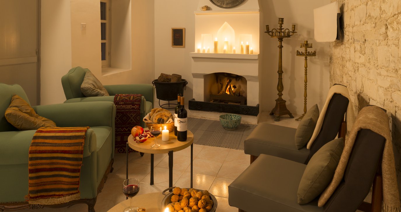 Στολίδια, λαμπιόνια και το τζάκι αναμμένο με μια χριστουγεννιάτικη ταινία να παίζει στην τηλεόραση