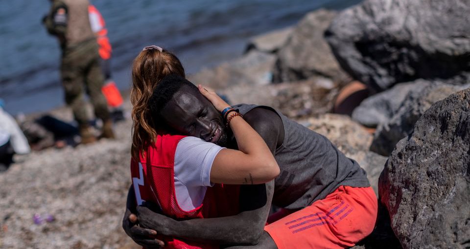 Μετανάστης από την Αφρική κλαίει στην αγκαλιά εθελόντριας του Ερυθρού Σταυρού - Θύλακας Θέουτα, σύνορα Ισπανίας-Μαρόκου (18/5/2021)