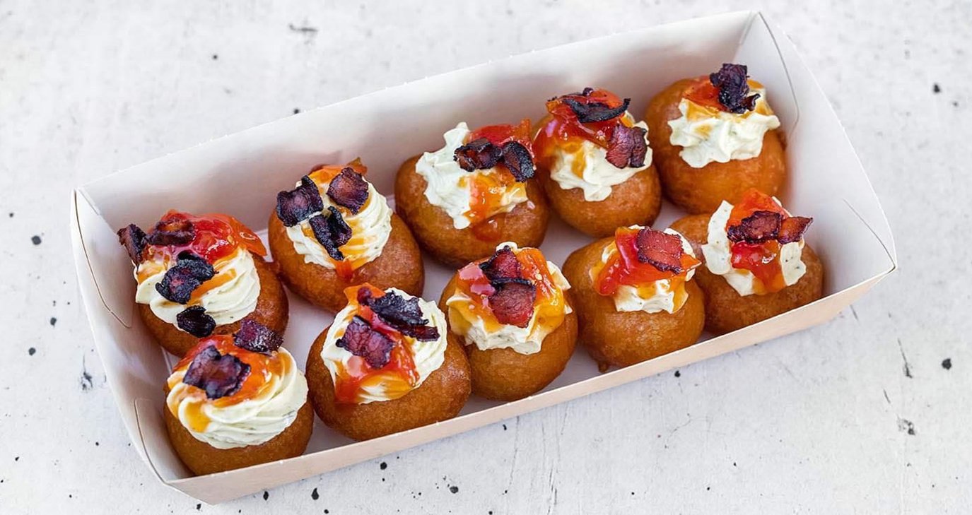 Οι cheesy λουκουμάδες περιέχουν μια πεντανόστιμη καπνιστή γαλοπούλα με πάπρικα, λιωμένο τυρί τσένταρ πασπαλισμένο με chives onion. Οι pesto λουκουμάδες είναι η δεύτερη αλμυρή επιλογή σου μιας και περιέχουν μια απολαυστική στρώση από τυρί φιλαδέλφεια, pesto βασιλικού, μαρμελάδα ντομάτας και crispy bacon.