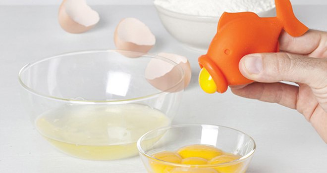 Πολύ έξυπνος και πρακτικός ο σχεδιασμός του πλαστικού ψαριού που μπορεί να αρπάξει -με ένα ζούληγμα- τον κρόκο από το υπόλοιπο αβγό! Ο σχεδιασμός ανήκει στην Peleg Design,που μας έχει συνηθίσει σε τέτοια διασκεδαστικά χρηστικά αντικείμενα. Το YokFish δουλεύει πολύ εύκολα. Πιέζεις το λαστιχένιο ψάρι για να αποβάλει τον αέρα του και μετά τοποθετείς το στόμιό του ακριβώς πάνω από τον κρόκο, στο μπολ που έχει ήδη σπάσει ολόκληρο το αβγό, κι αυτό το ρουφάει σαν βεντούζα!