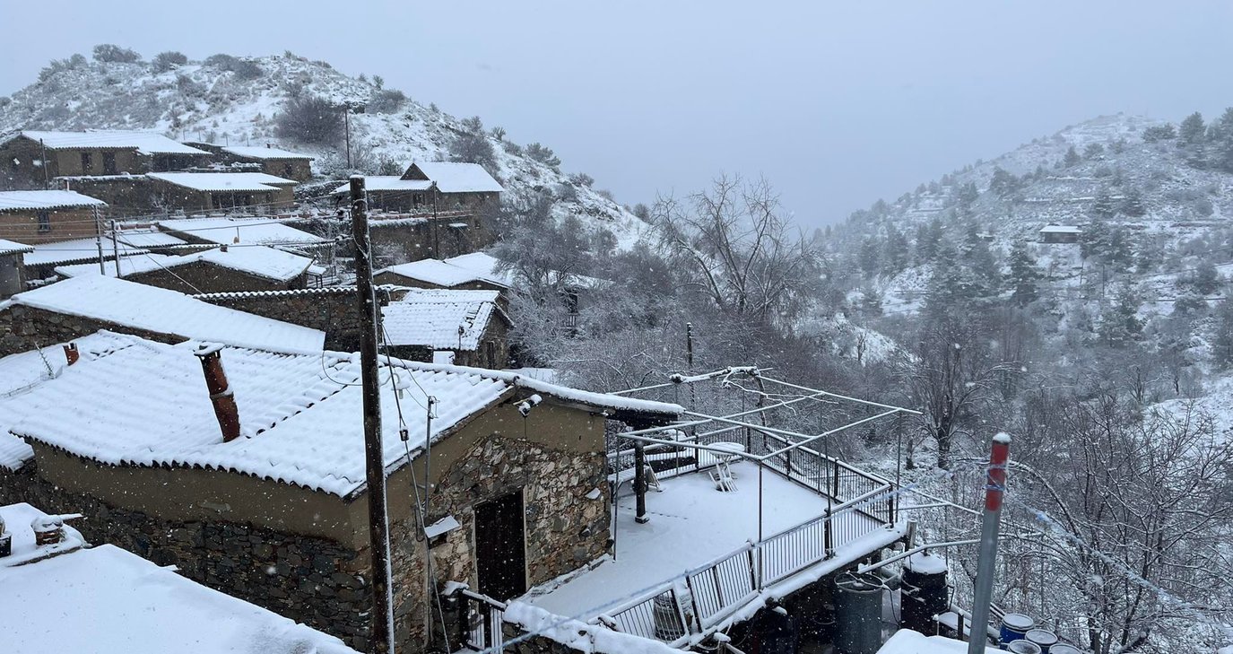 Το λευκό πέπλο σκέπασε τα πάντα δίνοντας μας μαγικές εικόνες. Το χιόνι έχει στρωθεί για τα καλά ενώ τα τζάκια σε όλα τα σπίτια έχουν ανάψει λόγω του κρύου.