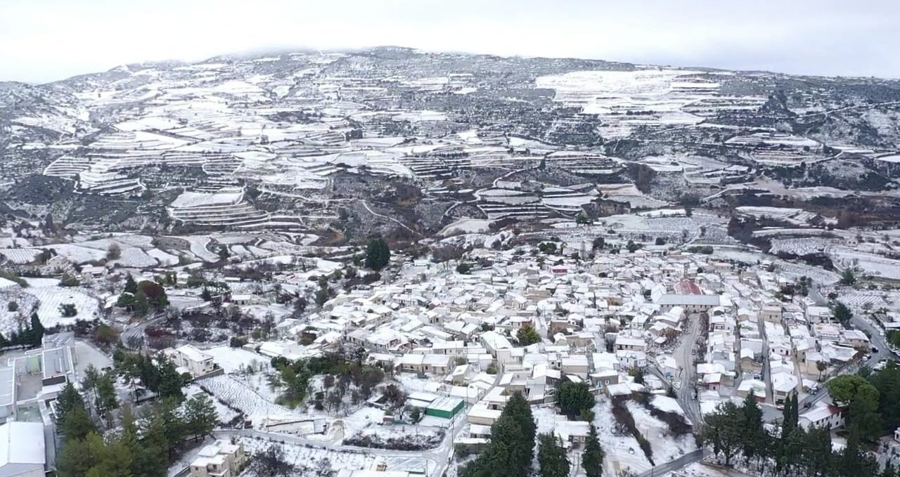 Φωτογραφίες και βίντεο που αναρτώνται στα μέσα κοινωνικής δικτύωσης μας δίνουν μια γεύση από το κατάλευκο τοπίο που δημιουργήθηκε στην ημιορεινή και ορεινή Κύπρο.