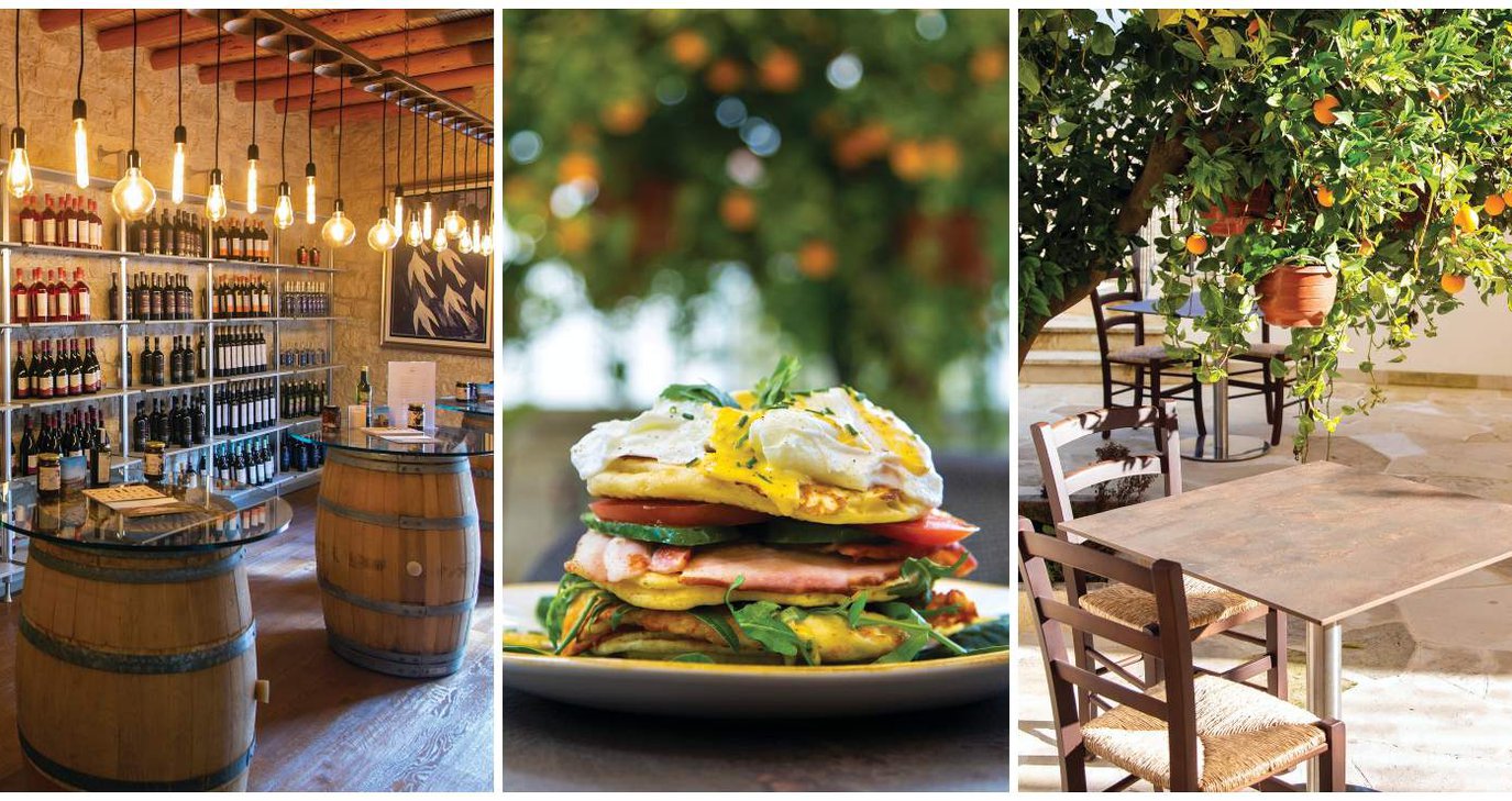 Εδώ λοιπόν θα απολαύσεις brunch με παραδοσιακό twist αλλά και μεσημεριανό με ένα μενού αποτελούμενο από πλούσιες σαλάτες με εποχιακά τοπικά χόρτα, μελιτζανόριζο δίπλα σε αυθεντικά κυπριακά πιάτα όπως αφέλια ή πολίτικες συνταγές σαν τα γεμιστά «γιαλατζί» αλλά και πιάτα σχάρας και αντικριστό κυπριακό αρνί μέσα από τον ξυλόφουρνο. Τα πιάτα συνοδεύονται από τοπικά προϊόντα όπως ομοδίτικο αρκατένο ψωμί και σπιτικές πίτες και πιάτα από τον τόπο μας, όπως τα «καλοηρκά» τα κυπριακά «τορτελίνια».