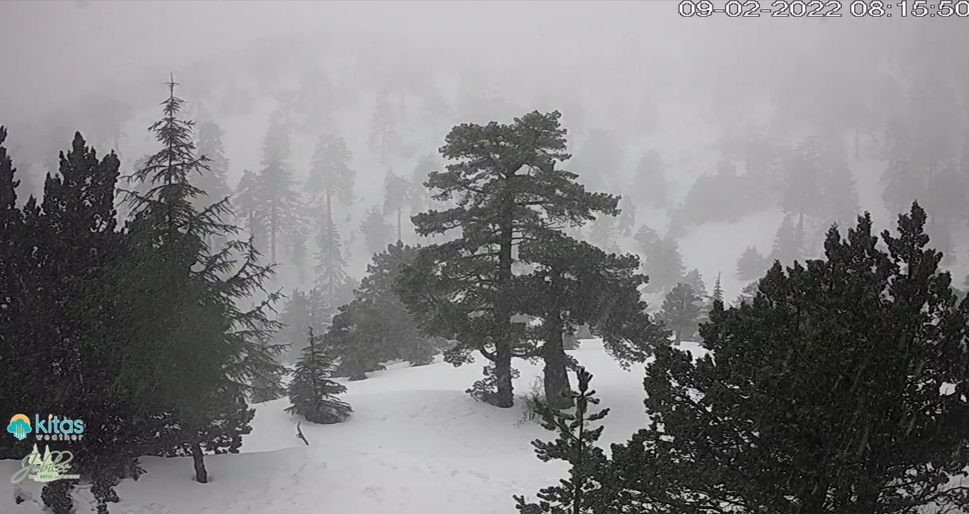 Σύμφωνα με το Kitas Weather, παρατηρείται πυκνή χιονόπτωση στη γύρω περιοχή με θερμοκρασία στους -2.1 στα 1750 μέτρα.