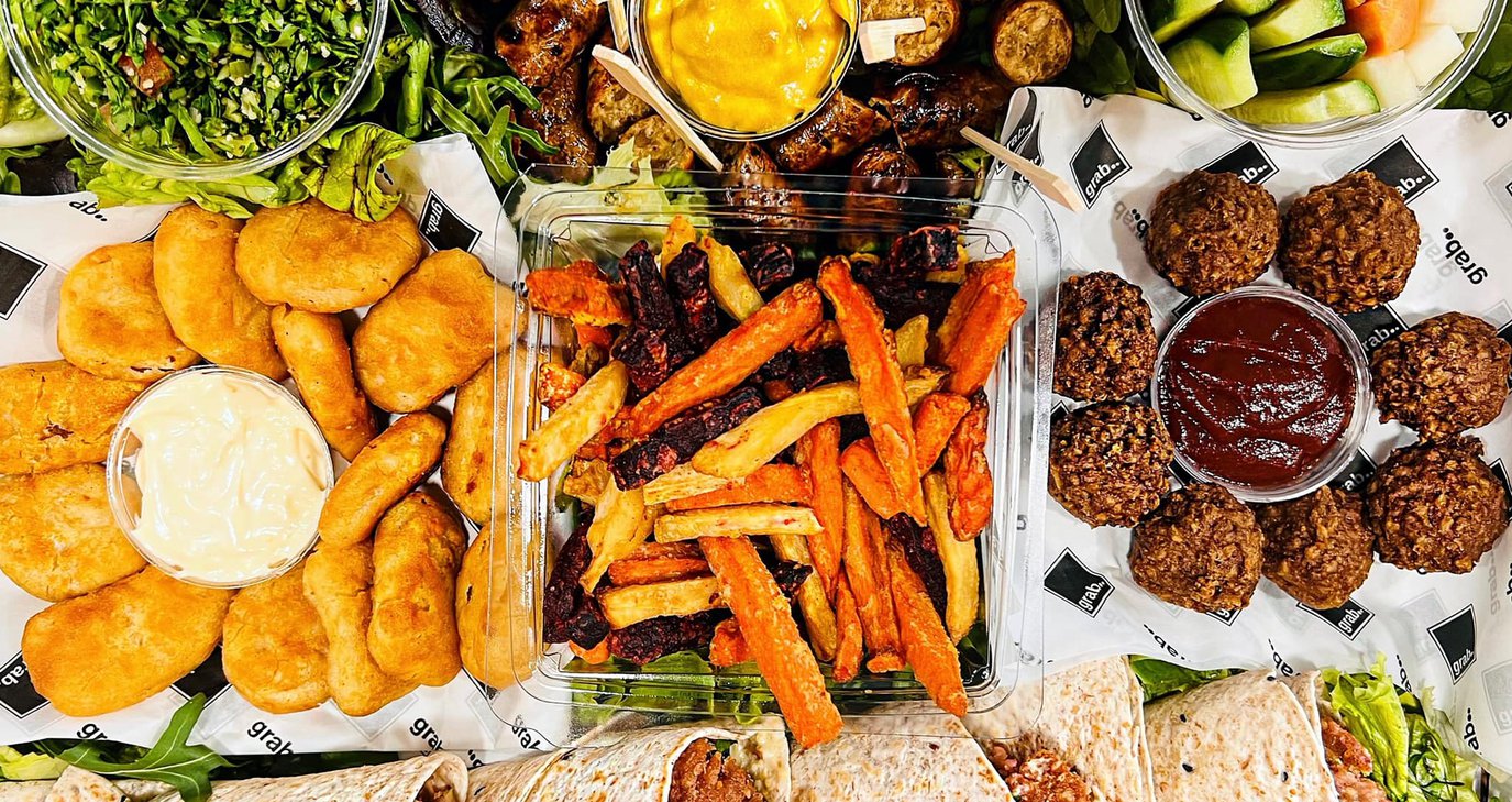 Στον πολύ γουστόζικο χώρο του Grab, του artisan bakery της Λεμεσού με τη (healthy) φιλοσοφία και τα προϊόντα του, θα πας αν θέλεις να γιορτάσεις την Τσικνοπέμπτη με τον πιο υγιεινό τρόπο! Εδώ λοιπόν θα φροντίσουν για το μεσημεριανό με τους συναδέλφους ή τους φίλους, ετοιμάζοντάς σου μια πιατέλα γεμάτη vegan καλούδια! Μία πεντανόστιμη επιλογή από λιχουδιές χωρίς κρέας, όπως από ζουμερό gyro wraps, νόστιμα και ζουμερά λουκάνικα λαχανικών, κεφτεδάκια από φυτικές πρωτεΐνες , τραγανά golden (chick-free) nuggets, vegan σάλτσες, ντιπ και σπιτικά μπαστουνάκια λαχανικών. Προγραμματίστε εκ των προτέρων και προ-παραγγείλετε το.