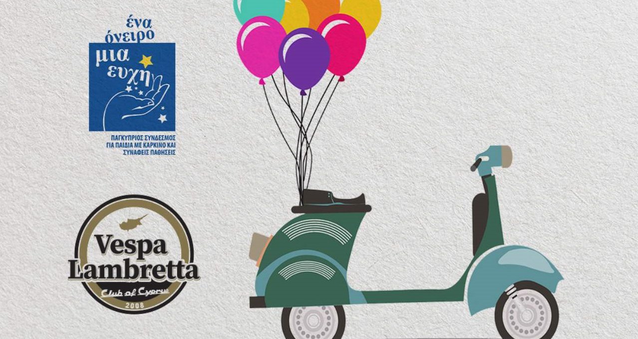 Στο πλαίσιο της "Διαδρομής Αγάπης 2022" το σωματείο "Vespa-Lambretta Club of Cyprus" συμμετέχει ενεργά την Κυριακή 20 Μαρτίου, όπου θα διεξάγει έρανο στη Λευκωσία από Cafe σε Cafe, καταλήγοντας στην πλατεία Φανερωμένης και εκεί να στηρίξουμε όλοι μαζί το παζαράκι που διοργανώνει σε μια επιπλέον προσπάθεια ενίσχυσης του σκοπού αυτού.