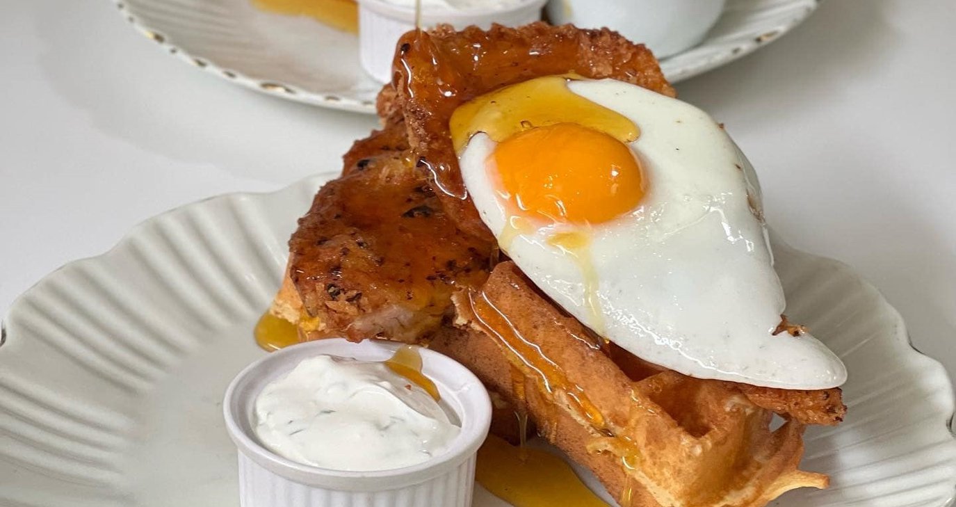Πρόκειται για το πολύ ιδιαίτερο και πεντανόστιμο Chicken n waffle το οποίο είναι φτιαγμένο με τραγανό κοτόπουλο μαζί με σπιτικές βάφλες, maple syrup, sour cream και chives. Από πάνω, μάλιστα θα μπει κι ένα τηγανητό αβγό για να ολοκληρωθεί η γευστική εμπειρία.