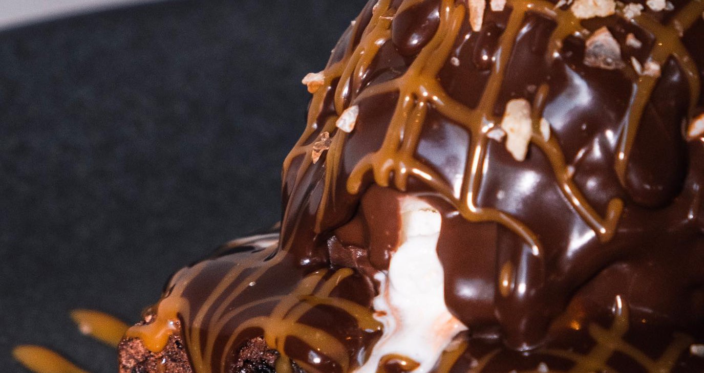 Πρόκειται για μια λαχταριστή σοκολατένια πανδαισία γεύσεων και αρωμάτων αφού σερβίρεται με σος ζεστής και πλούσιας λιωμένης σοκολάτας, σος καραμέλας και χοντροκομμένα καρύδια.