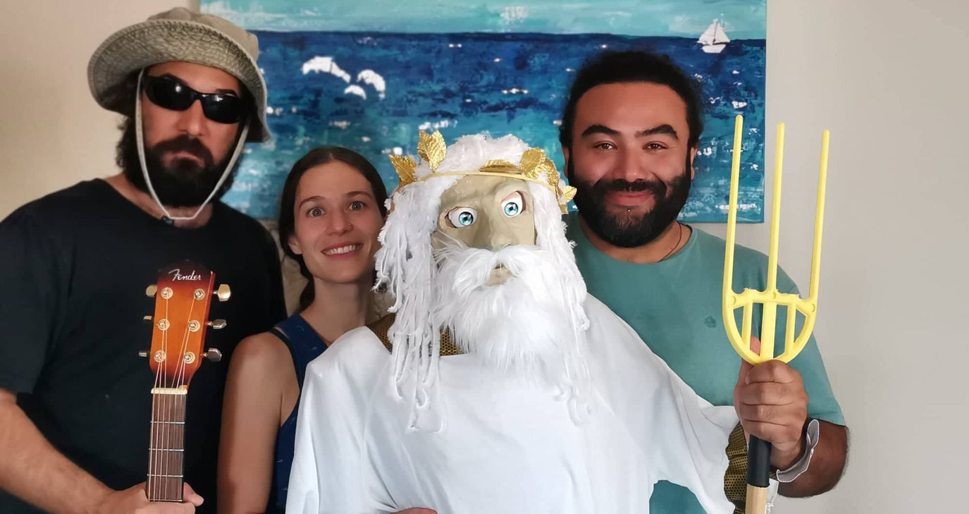 Ο Roberto Braham και η Μαρίνα Κατσαρή, το κουκλοπαικτικό ντουέτο της παράστασης ‘’Τα πιόνια του βασιλιά’’, ενώνουν τις δυνάμεις τους με τον επί σκηνής μουσικό Βαγγέλη Γέττο και παρουσιάζουν μια…θεότρελη ιστορία για την προστασία της Ποσειδωνίας, των παραλιών και της θάλασσας, γεμάτη αστείες συναντήσεις και ανατροπές.