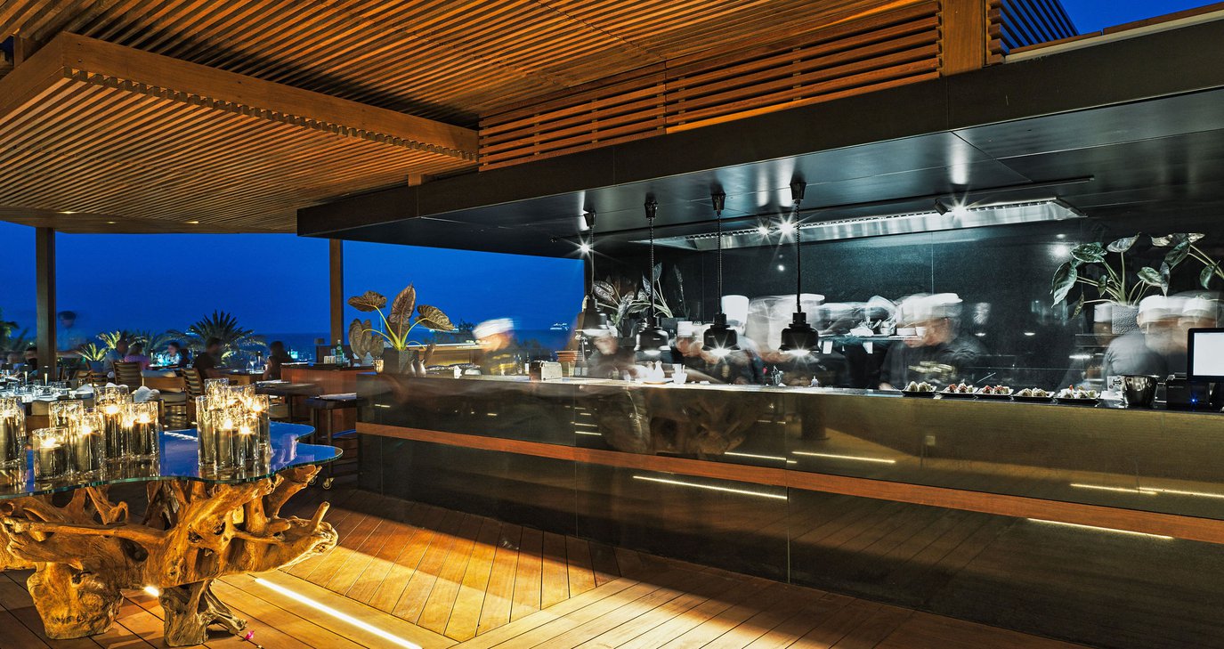 Στην αριστερή μεριά της βεράντας Vista Terrace του Four Seasons, και πάνω από τη λίμνη με τα εξωτικά ψάρια ΚΟΙ, η δημιουργική και πολύ ταλαντούχα ομάδα του M Fusion, δημιούργησε ένα μοναδικό ατμοσφαιρικό χώρο με θέα τη θάλασσα της Λεμεσού.