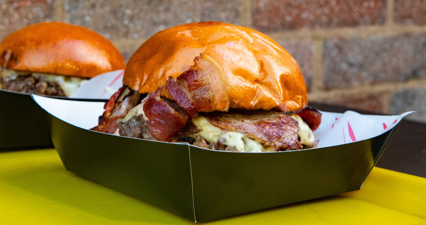 -100% Βοδινό μπέργκερ με σάλτσα chimichurri, σπιτική vegan μαγιονέζα, μαρούλι, ντομάτα και σπιτικό αγγουράκι τουρσί σερβιρισμένο σε σπιτικό φραντζολάκι με παντζάρι / 100% beef burger with chimichurri sauce, homemade vegan mayo, lettuce, tomatoes and homemade gherkins served in a homemade beetroot bun.
