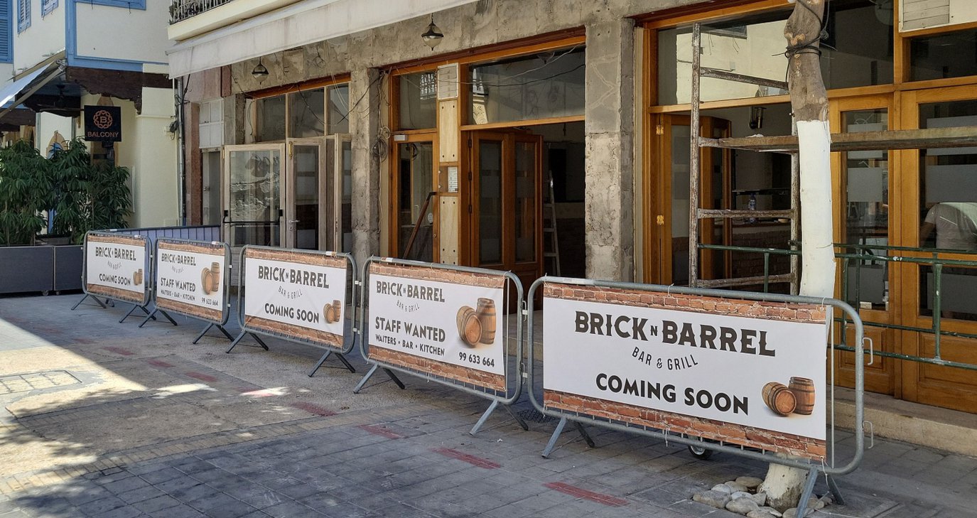 Το Brick 'n' Barrel θα είναι ένα bar and grill με αμερικανική κουζίνα (βλέπε burgers, steaks, διάφορα κρεατικά και σαλάτες) με τη συνοδεία, φυσικά, άφθονης μπίρας, ενώ οθόνες θα προβάλλουν αγώνες ποδοσφαίρου διακριτικά όσο εσύ θα απολαμβάνεις το φαγητό σου.
