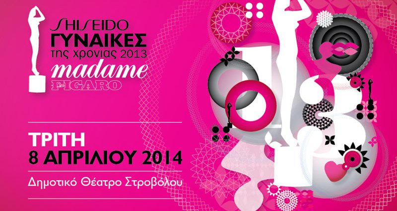 H τελετή βράβευσης για τις Madame Figaro Γυναίκες της χρονιάς 2013 που παρουσιάζει η Shiseido θα πραγματοποιηθεί την Τρίτη 8 Απριλίου στο Δημοτικό Θέατρο Στροβόλου στις 8:00 το βράδυ. Η βραδιά προμηνύεται γεμάτη εκπλήξεις, συναίσθημα και συγκίνηση.