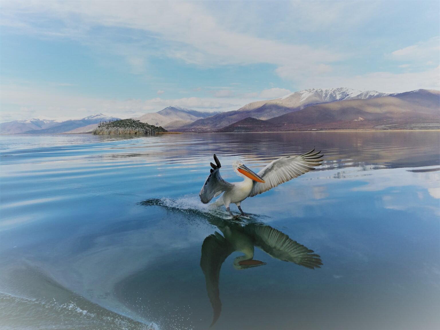 Με βάρκα και ξεναγό διαπλεύσαμε την Μεγάλη με τα περίφημα ασκηταριά και ολόγυρα διακρίνουμε τους Ροδοπελεκάνος και αργυροπελεκάνους, που αποτελούν σύμβολο του Εθνικού Δρυμού. Η αποικία ερωδιού – αργυροτσικνιά, που διακρίνετε στους βράχους, διαθέτει το μεγαλύτερο αναπαραγόμενο πληθυσμό στην Ελλάδα. Εντυπωσιακό είναι ότι 140 είδη πουλιών εδώ φωλιάζουν.