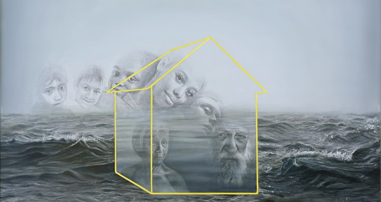 Ο οίκος και το σχήμα του εμφανίζεται σχεδόν σε όλα τα έργα ως εικόνα αρχετυπική. Πρωταγωνιστές είναι άνθρωποι καθημερινοί και το σπίτι είναι το πεδίο όπου εξελίσσεται η σύγχρονη πραγματικότητα πίσω από τις κλειστές πόρτες. Η έννοια του «οίκου» που προστατεύει ως απάγκιο, ενώνει, αλλά μπορεί και να περιορίζει, ακόμη και να συνθλίβει, ζωντανεύει και γίνεται επιφάνεια ζωγραφική. Στις δύο διαστάσεις καθρεφτίζεται ο ζωτικός χώρος όπου ο κόσμος βίωσε τα τελευταία χρόνια την πρωτόγνωρη δοκιμασία του εγκλεισμού υπό το φόβο της αόρατης απειλής.