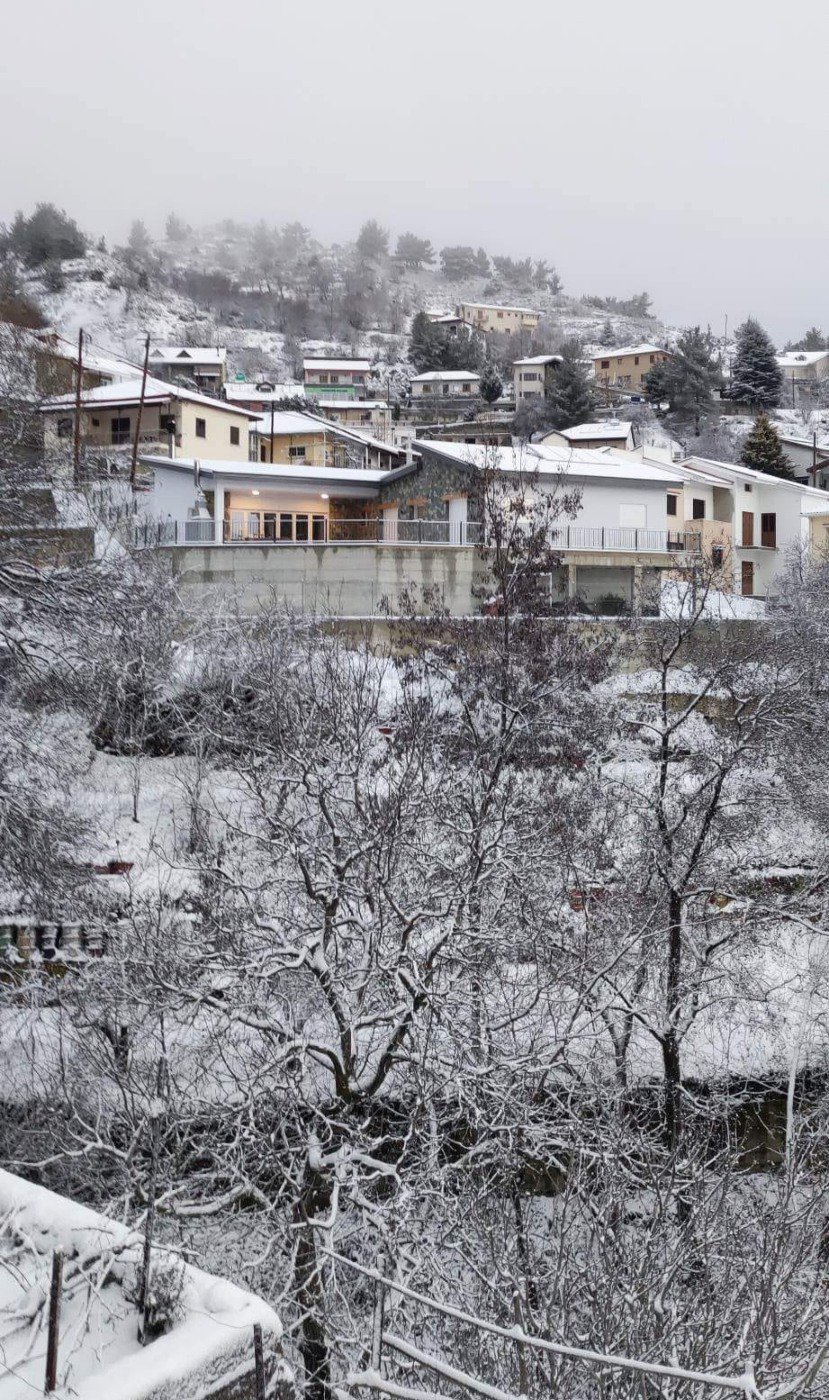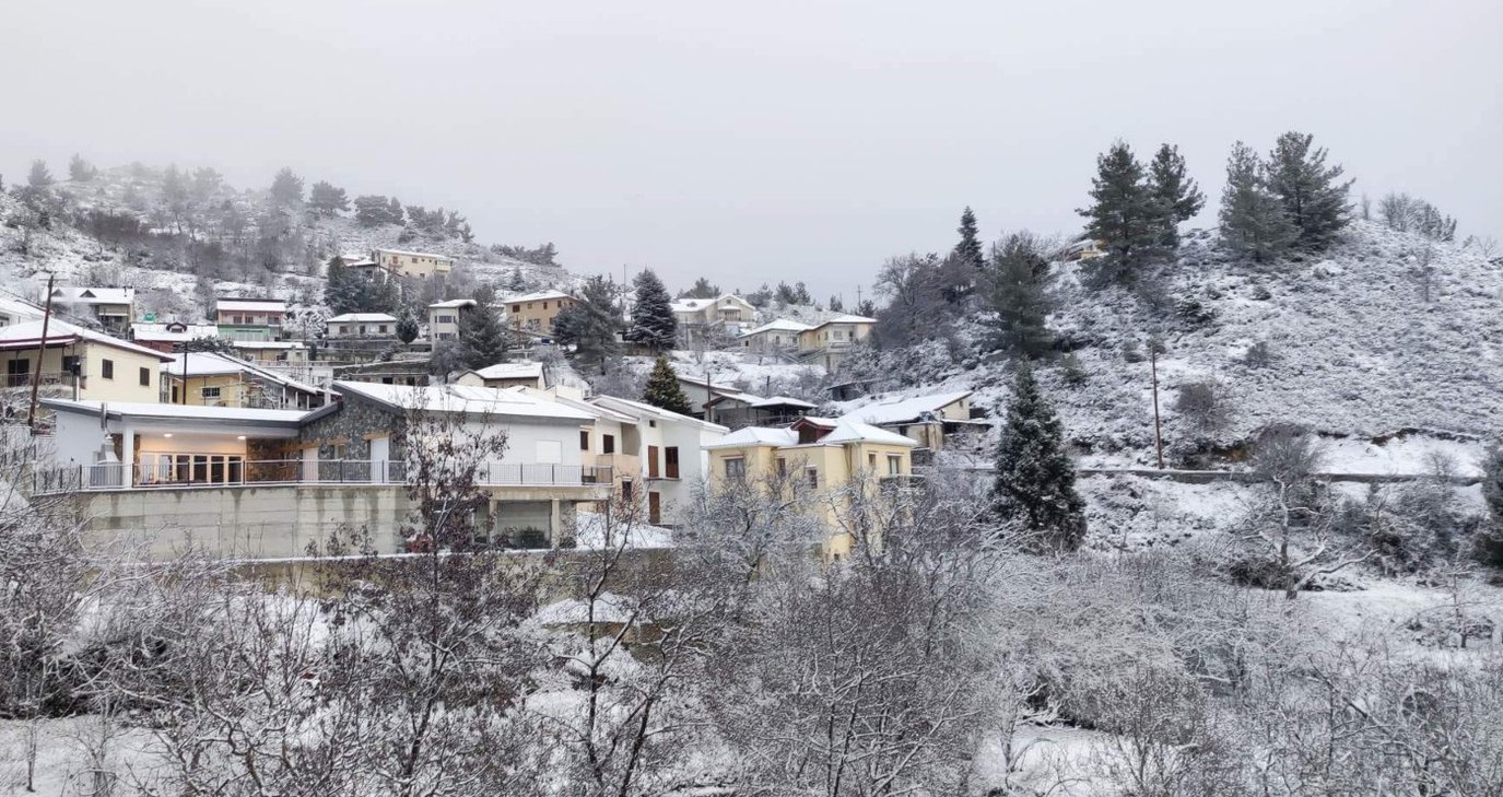 Οι χαμηλές θερμοκρασίες των τελευταίων ημερών έχει ως αποτέλεσμα να ντυθούν στα λευκά όχι μόνο οι ψηλές κορυφές του Τροόδους αλλά και τα χωριά σε χαμηλότερο υψόμετρο.