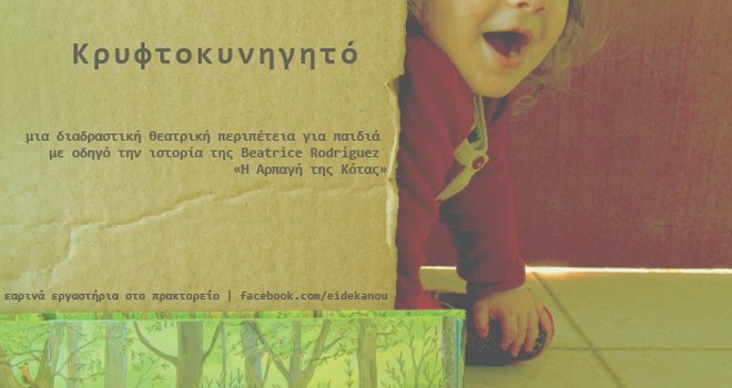 Είναι μια μέρα σαν όλες τις άλλες. Στο αγρόκτημα, η αρκούδα, ο λαγός, ο κόκκορας και οι κότες απολαμβάνουν το πρωινό τους. Ξαφνικά μέσα από τους θάμνους πετάγεται η αλεπού και αρπάζει μία από τις κότες του αγροκτήματος. Μια ξέφρενη καταδίωξη ξεκινά τότε μέσα σε δάση, θάλασσες και βουνά, η οποία καταλήγει σε ένα απρόσμενο τέλος. Με οδηγό δραματοποίησης τα ζώα, τα οποία πρωταγωνιστούν στην ιστορία χωρίς λόγια της Beatrice Rodriguez, "Η Αρπαγή της Κότας", το Θέατρο Ειδεκανού πραγματοποιεί δύο θεατρικά εργαστήρια για παιδιά. Το πρώτο εργαστήρι απευθύνεται σε παιδιά 2 με 4 χρονών, και το δεύτερο σε παιδιά 5 με 9 χρονών. Η δομή των εργαστηρίων είναι κοινή και για τις δύο ομάδες, η μέθοδος εργασίας, η προσέγγιση, αλλά και οι στόχοι διαφέρουν ανάλογα με την ηλικία των συμμετεχόντων. Τα εργαστήρια θα πραγματοποιηθούν στο Πρακτορείο, στην οδό Νικηταρά 19, στους Αγ. Ομολογητές στη Λευκωσία, τις Κυριακές 30 Μαρτίου & 6 Απριλίου. Ώρες: 10.30-12.00 (ομάδα παιδιών 2-4 χρονών) & 16.00-18.00 (ομάδα παιδιών 5-9 χρονών). Τηλέφωνα για πληροφορίες: 99849598, 96670490, 99363589 eidekanou@gmail.co. Κόστος συμμετοχής €7.