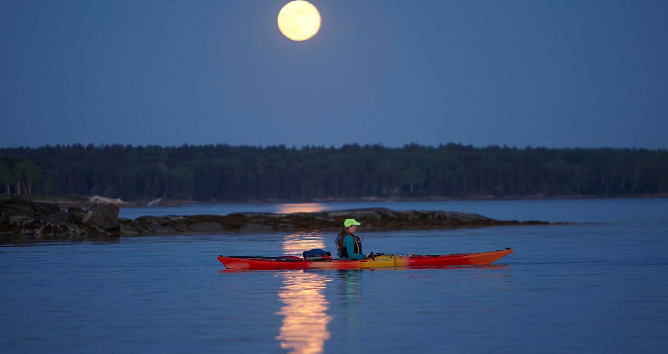 Θα μαζευτούμε στην Ακτή Κυβερνήτη. Εκεί θα μας περιμένουν τα καγιάκ μας με όλο τον απαραίτητο εξοπλισμό (σωσίβια, καγιάκ, κουπιά). Αφού ετοιμαστούμε και κάνουμε ένα μικρό μάθημα, θα ξεκινήσουμε να κωπηλατούμε κάτω από το φως του φεγγαριού. Τα καθαρά νερά και η θαλάσσια ζωή δημιουργεί το τέλειο σκηνικό για μια εμπειρία θαλάσσιου καγιάκ. Η ακτογραμμή που θα περάσουμε είναι μοναδική, τα απότομα βράχια που δημιούργησε η θάλασσα και η αλμύρα με το πέρασμα των αιώνων κάνει την περιπέτειά μας πιο μυστηριώδη και συναρπαστική. Κατά τη διάρκεια της διαδρομής θα έχουμε χρόνο για να απολαύσουμε τη μαγεία που προσφέρει η πανσέληνος στην παραλία.