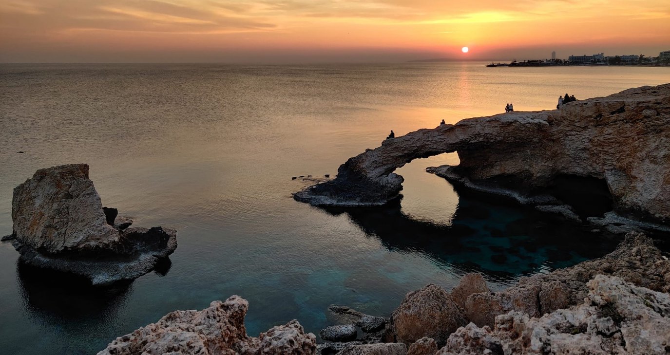 Στη φωτογραφία που ανέρτησε η Φανή Παναγίδου στο γκρουπ Στο Νησί / On the island βλέπουμε το σημείο της Αγίας Νάπας κατά το ηλιοβασίλεμα, και το θέαμα είναι μοναδικό.