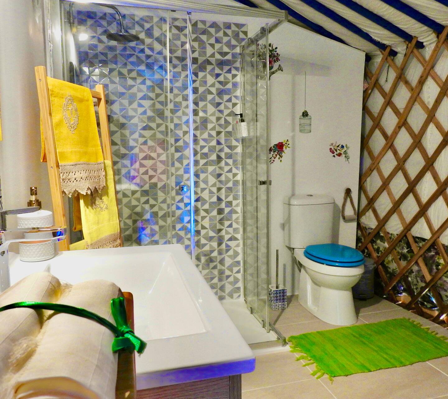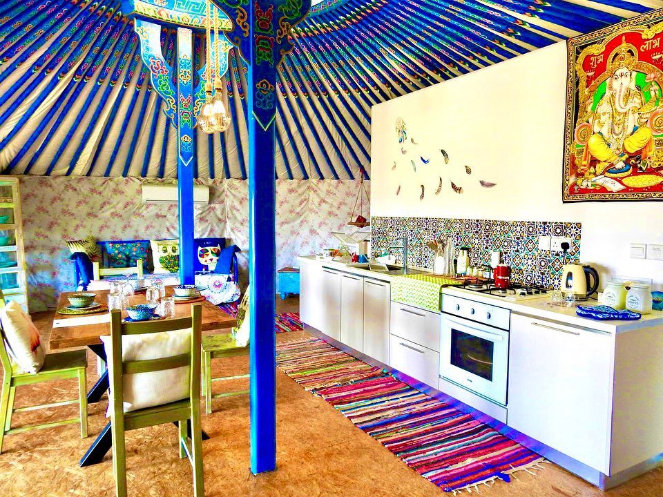 Τα δύο yurts (Day & Night) συνδέονται μεταξύ τους και είναι εξοπλισμένα με κάθε άνεση, συμπεριλαμβανομένου του χώρου χαλάρωσης, πλήρως εξοπλισμένης κουζίνας και ιδιωτικό μπάνιο με μεγάλο ντους και φώτα.