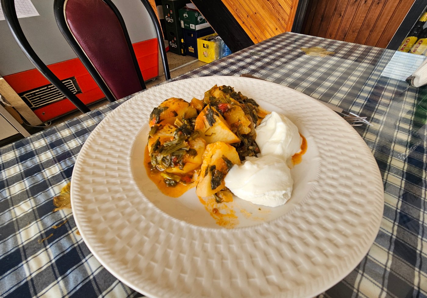 Χοιρινό με κολοκάσι, πατάτες ζεστές και φρεσκοψημένες στον φούρνο, κεφτέδες, μπιφτέκια και μπριζόλες, και φυσικά δεν θα μπορούσε να λείπει το κοτόπουλο της ψησταριάς. Για φινάλε, γλυκό του κουταλιού φτιαγμένο (και κερασμένο) από την κυρία Γεωργία.