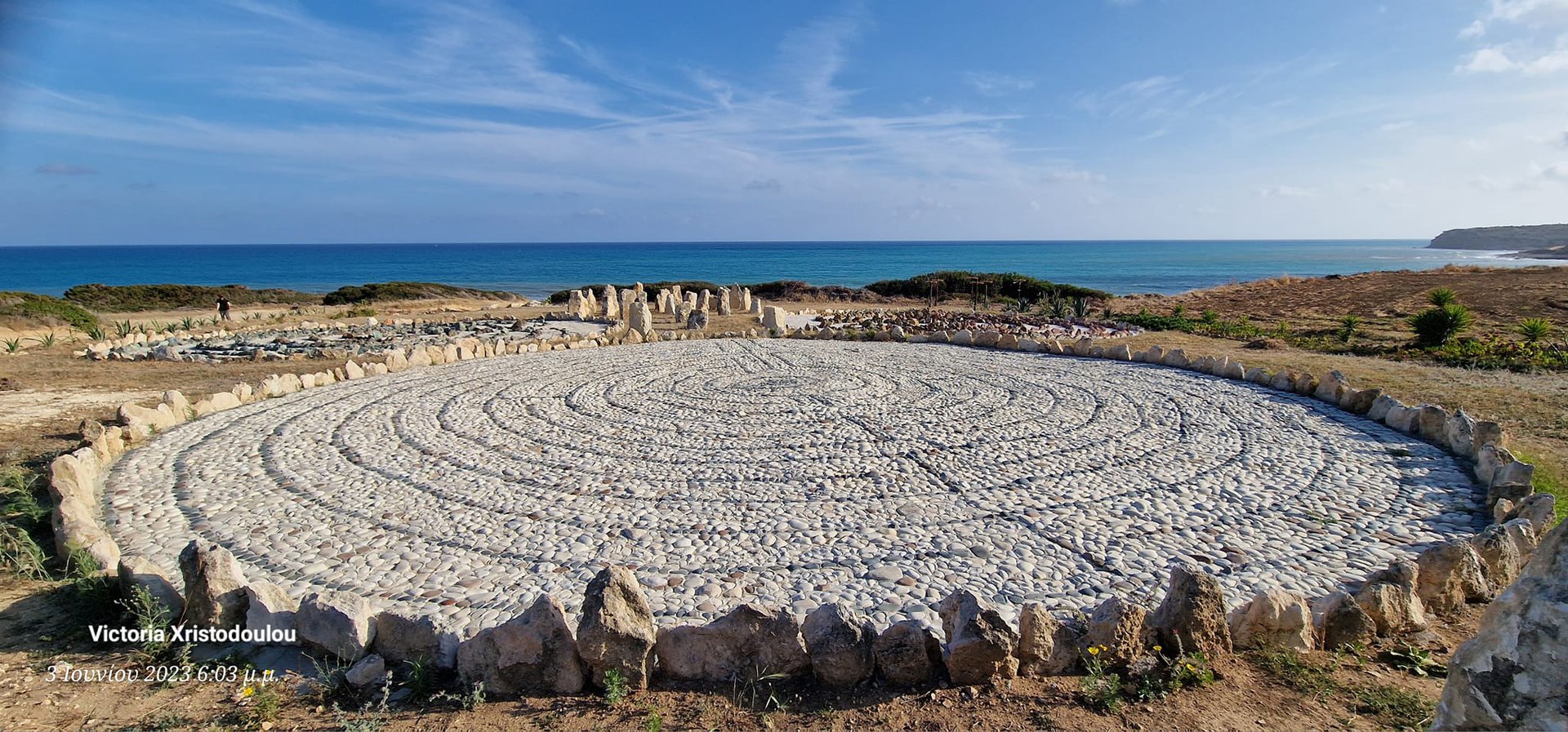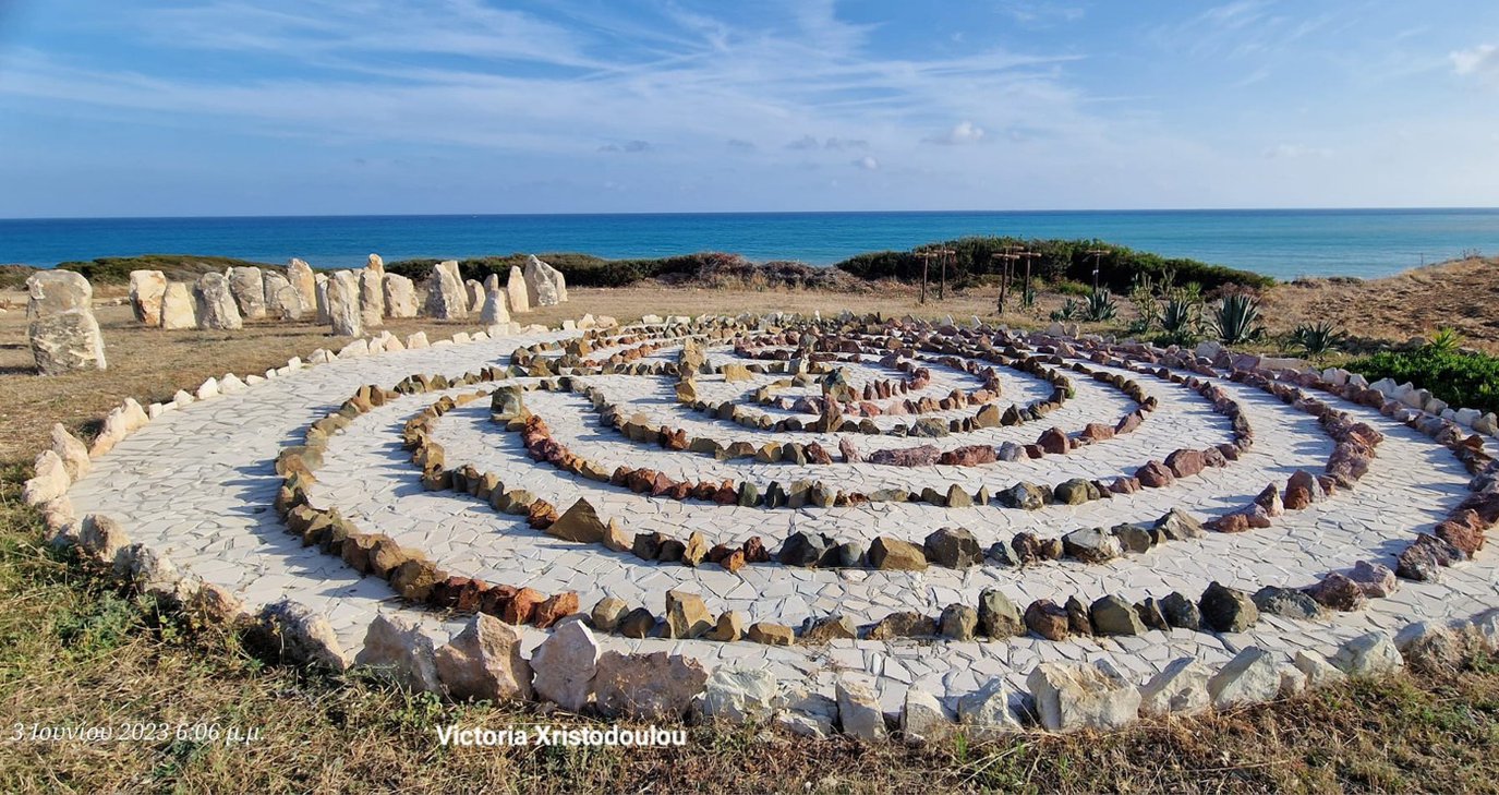 Το έργο του Pavel Muntyan στην Αυδήμου, κοντά στο Μελάντα, αποτελείται από τρεις μεγάλους κύκλους φτιαγμένους με την τεχνική ψηφιδωτού - από πέτρες τις περιοχής ή αγορασμένες από τον ίδιο - που σχηματίζουν λαβύριθνους. Το εντυπωσιακό θέαμα συμπληρώνεται, πλέον, από μια σειρά από βράχους στημένους για να επιβλέπουν την παραλία από τη μία και τους λαβύρινθους από την άλλη.