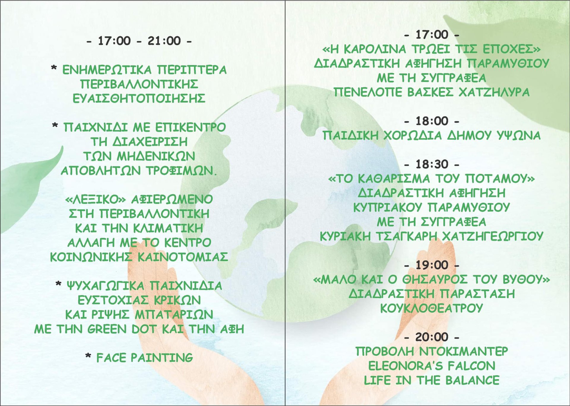 Μεταξύ άλλων στο χώρο θα υπάρχουν ενημερωτικά περίπτερα και ψυχαγωγικά παιχνίδια περιβαλλοντικής ευαισθητοποίησης.