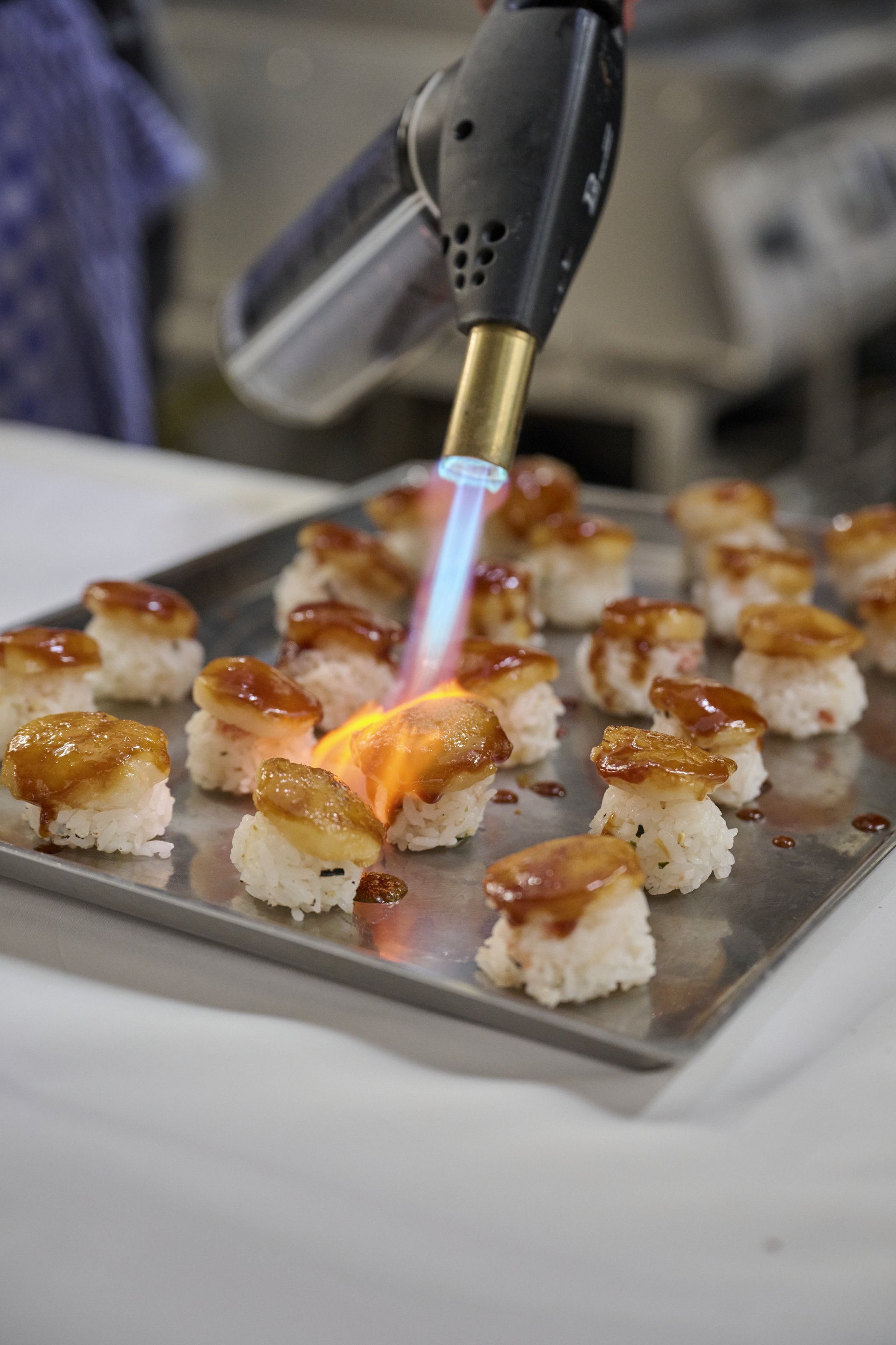 Ξεκινώντας τη βραδιά, με επιλογές απαλών μελωδιών του DJ, οι επισκέπτες κλήθηκαν πρώτα να δοκιμάσουν ένα ποτήρι Franciacorta Brut DOCG Marchese Antinori Cuvée Royale μαζί με μια τριάδα από καναπεδάκια που περιλάμβανε σφολιάτες ρυζιού με πάστα ελληνικού αυγοτάραχου, Furikake Shari με χτένι umeboshi και χαβιάρι ikura, και ταρτάρ μοσχαριού με φρέσκια μαύρη τρούφα.