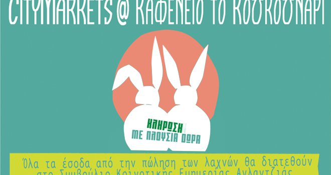 Χειροποίητες δημιουργίες, όπως πασχαλινά διακοσμητικά, λαμπάδες και λαγουδάκια, γλυκά, κοσμήματα, βιβλία, ονειροπαγίδες, κεριά, διακοσμητικά σπιτιού, ρούχα, παπούτσια, τσάντες και πολλά άλλα χειροποίητα και μοναδικά δημιουργήματα μαζί με περισσότερους από είκοσι καλλιτέχνες και δημιουργούς, θα βρεις στο 7ο City Markets Festival, που στηρίζει ο Δήμος Αγλαντζιάς. Την δε ψυχαγωγία των μικρών μας φίλων θα αναλάβει και τις δύο ημέρες κλόουν, ο οποίος θα βρίσκεται εκεί από τις 11.00-13.00, όπως και face painter. Την Κυριακή η Μαρία Σώτος θα διοργανώσει μάθημα γιόγκα, στο οποίο μπορείς να συμμετάσχεις δωρεάν με τη μόνη προϋπόθεση να έχεις μαζί σου ένα χαλάκι ή μια πετσέτα. Επίσης, κατά τη διάρκεια του City Markets η ομάδα τού υπό "ανέγερση" σωματείου ΚΑΦΕΝe (Κέντρο Αφιλοκερδούς Εξεύρεσης Νεανικής Επιχειρηματικότητας) θα συνεχίσει την προσπάθειά της να σπάσει το ρεκόρ Guinness με το μεγαλεπήβολο “Ι am the economy”. Κατά τη διάρκεια του διήμερου φεστιβάλ, τέλος, θα πωλούνται λαχνοί με πλούσια δώρα, τα οποία θα προσφέρουν οι συμμετέχοντες, καθώς και άλλες επιχειρήσεις και οργανώσεις. Όλα τα έσοδα από την πώληση των λαχνών θα διατεθούν στο Συμβούλιο Κοινοτικής Ευημερίας Αγλαντζιάς.