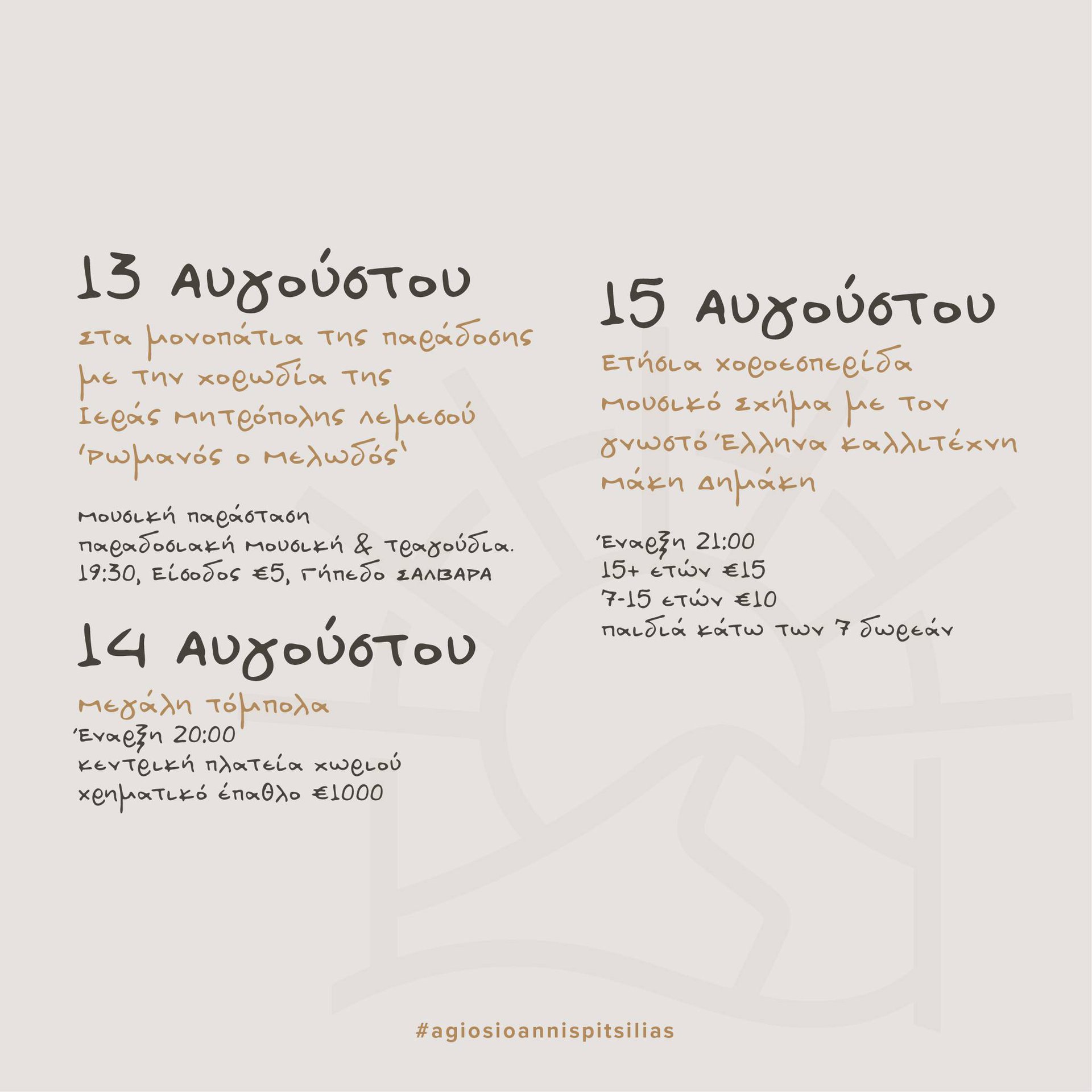 Ο Σύνδεσμος Αποδήμων & Φίλων Αγίου Ιωάννη Πιτσιλιάς ανακοίνωσε τις καλοκαιρινές εκδηλώσεις του στο χωριό.