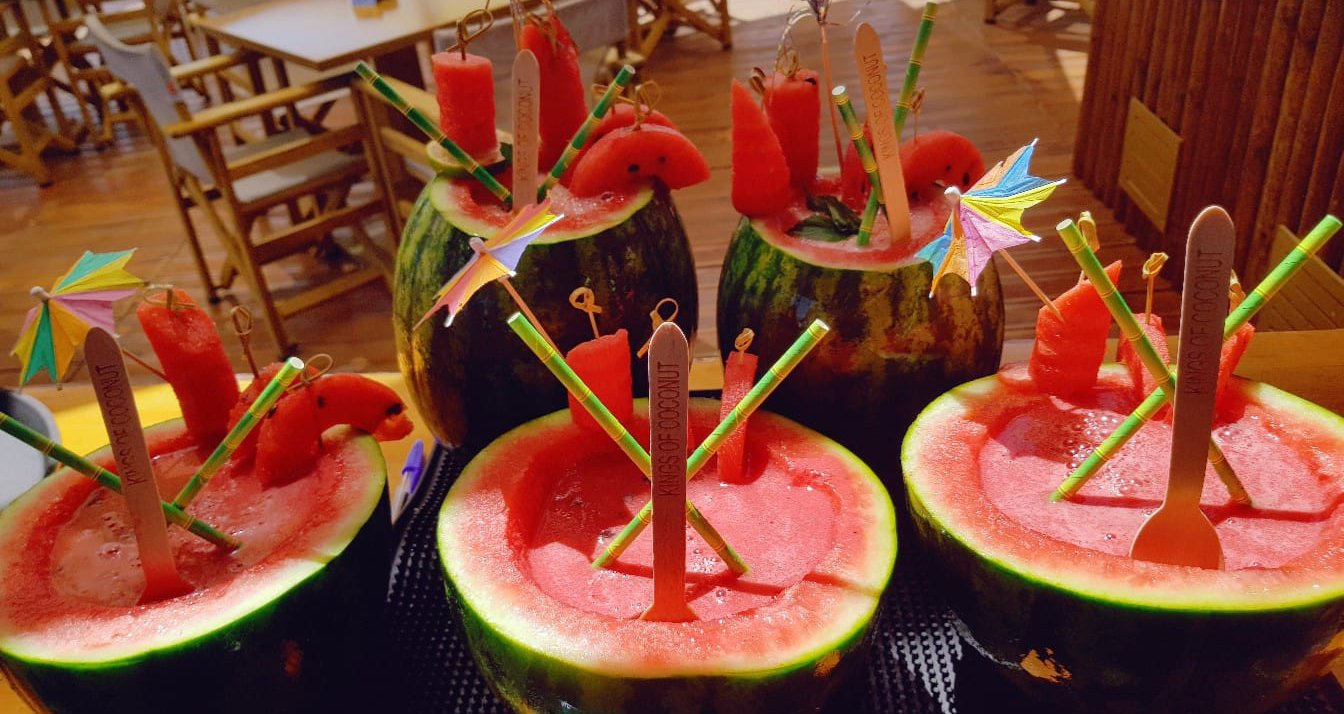 Στον κατάλογό του θα βρεις κοκτέιλ σε καρύδα, καρπούζι, πεπόνι, μάνγκο και άλλα πολλά, τα οποία μπορείς να συνδυάσεις με ένα από τα platters που περιλαμβάνουν φρέσκα φρούτα.