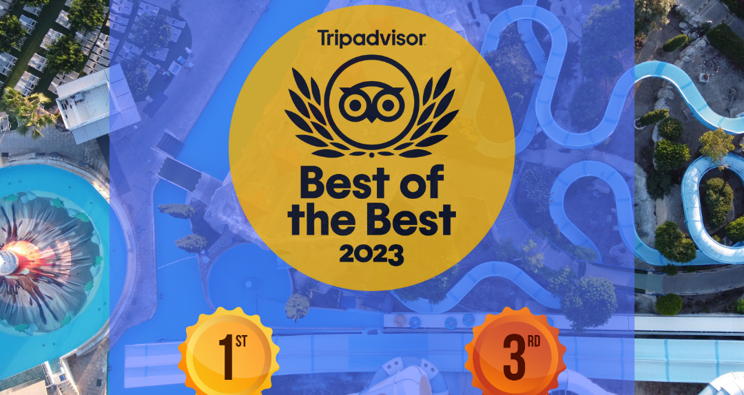 Είμαστε στην ευχάριστη θέση να σας ενημερώσουμε ότι το Paphos Aphrodite Waterpark τιμήθηκε με το διάσημο βραβείο BEST OF THE BEST 2023 από το TripAdvisor! Αυτή η αξιόλογη διάκριση απονέμεται κάθε χρόνο σε επιχειρήσεις που έχουν λάβει εξαιρετικές κριτικές από ταξιδιώτες και κατατάσσονται στο κορυφαίο 1% των αξιοθέατων παγκοσμίως.