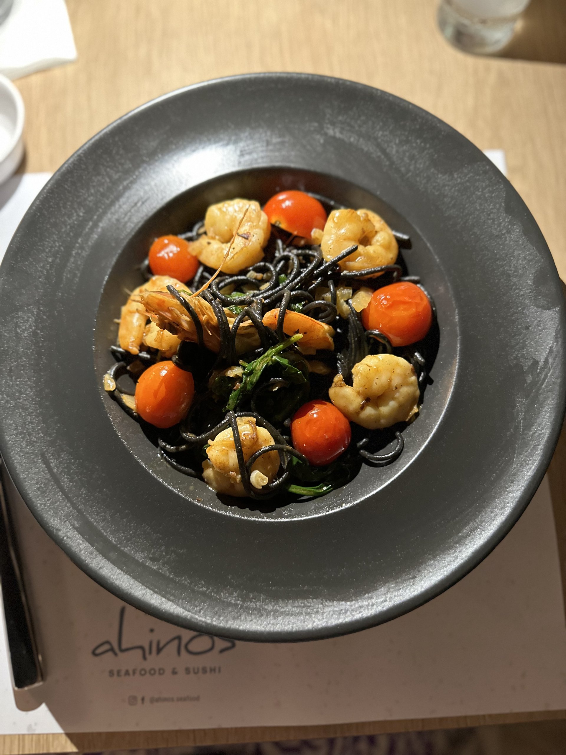 Περνώντας στα κυρίως, δοκιμάσαμε χταπόδι στη σχάρα συνοδευμένο με σπιτική φάβα, τηγανιτό καλαμάρι με πατάτες τηγανίτες και ένα πολύ ωραίο σος ταρτάρε. Συνεχίσαμε με πιάτα ζυμαρικών με την κρεμώδες μακαρονάδα θαλασσινών να μας ενθουσιάζει αλλά και τα ζυμαρικά με μελάνι καλαμαριού και βασιλικές γαρίδες να είναι εξίσου νόστιμα.