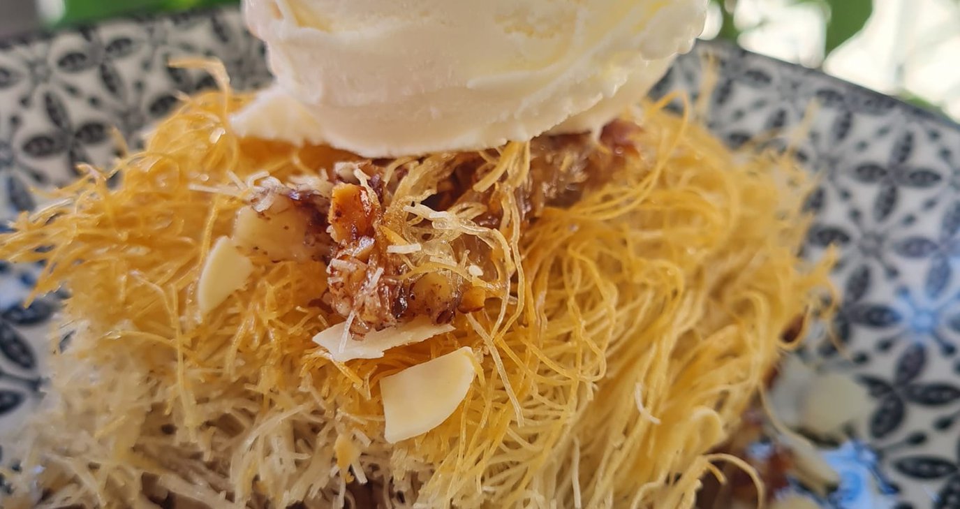 Ξέρουμε ακριβώς πού να πας. Το Nanas Brunch & More παρουσιάζει (και σερβίρει) φρεσκοψημένο κανταϊφι με καβουρδισμένο αμύγδαλο, κανέλα, ροδόσταγμα και παγωτό βανίλια.