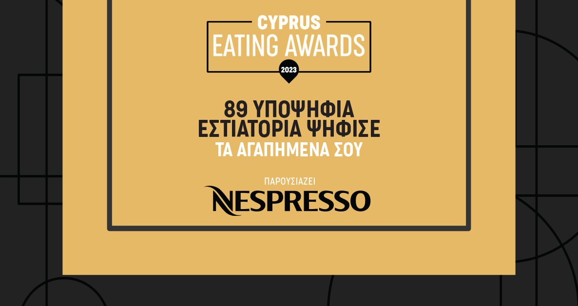 Τα Cyprus Eating Awards, ο μεγαλύτερος γαστρονομικός θεσμός της Κύπρου, επιστρέφει για 19η χρονιά, για να επιβραβεύσει τα κορυφαία εστιατόρια του νησιού και η ψηφοφορία έχει ήδη αρχίσει. Τα βραβεία παρουσιάζει η Nespresso.