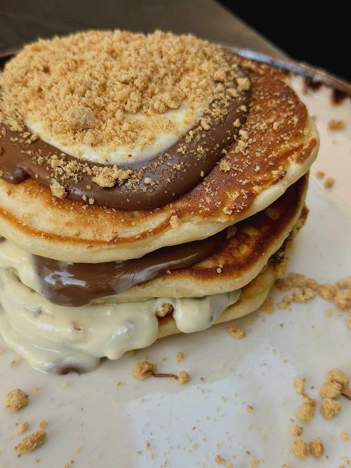 Για τα γλυκά pancakes, επειδή όπως και να το κάνουμε ο καθένας έχει τις δικές του προτιμήσεις, έχεις μπροστά σου δέκα επιλογές για topping έτσι ώστε να τις φτιάξεις όπως ακριβώς τις λαχταράς. Εμείς πήγαμε στους πιο safe συνδυασμούς – πραλίνα, λευκή σοκολάτα και μπισκότο – και τις απολαύσαμε και με το παραπάνω, με τις σοκολάτες να υπάρχουν σε γενναιόδωρη ποσότητα χωρίς όμως να σε λιγώνουν.
