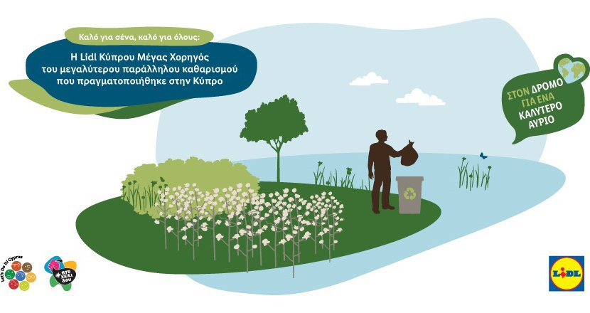 Παραμένοντας πιστή στις εταιρικές της αξίες, η Lidl Κύπρου, συνεχίζει να στέκεται αρωγός σε πρωτοβουλίες και ενέργειες που κύριο μέλημά τους έχουν την προστασία του περιβάλλοντος, καθώς και την καλλιέργεια περιβαλλοντικής συνείδησης. Σε αυτό το πλαίσιο φέτος, ως Μέγας Χορηγός του μεγαλύτερου ενιαίου καθαρισμού που έγινε ποτέ στην Κύπρο, θα δώσει το μεγάλο της «παρών» την Κυριακή 29 Οκτωβρίου στο Γραμμικό Πάρκο Λευκωσίας, στην Τελετή Λήξης της Εβδομάδας Καθαρισμού που διοργανώνει το Let’s Do It! Cyprus με την συμβολή των Δήμων Λευκωσίας, Στροβόλου και Λακατάμιας που γειτνιάζουν του πάρκου.