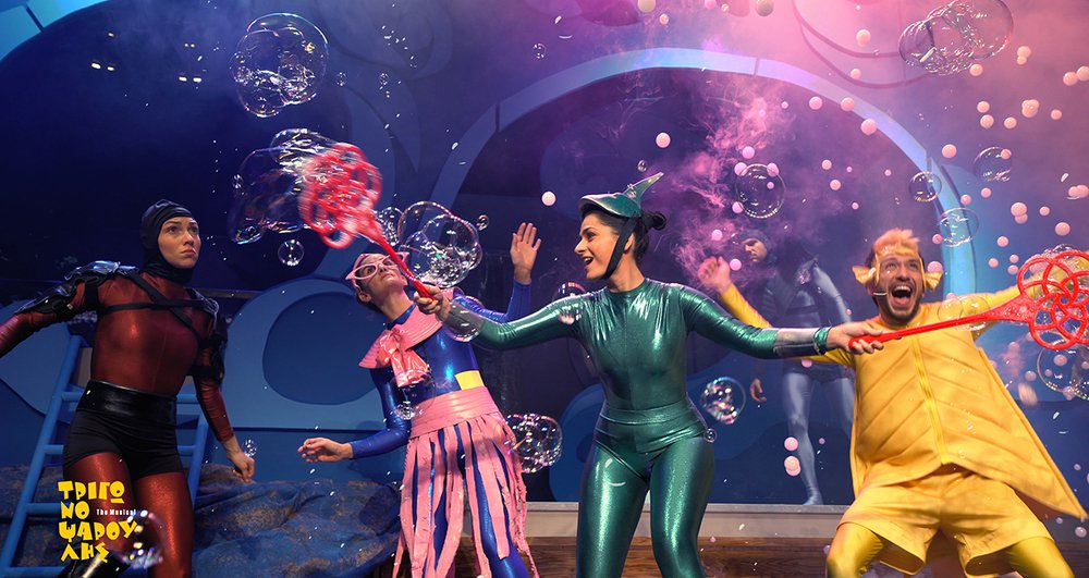 “Τριγωνοψαρούλης The Musical” μια φαντασμαγορική θεατρική παράσταση με εντυπωσιακά σκηνικά και κοστούμια, μαγικές χορογραφίες, εναέρια ακροβατικά, bubble show και πολλές ακόμη εκπλήξεις που θα σας συναρπάσουν.