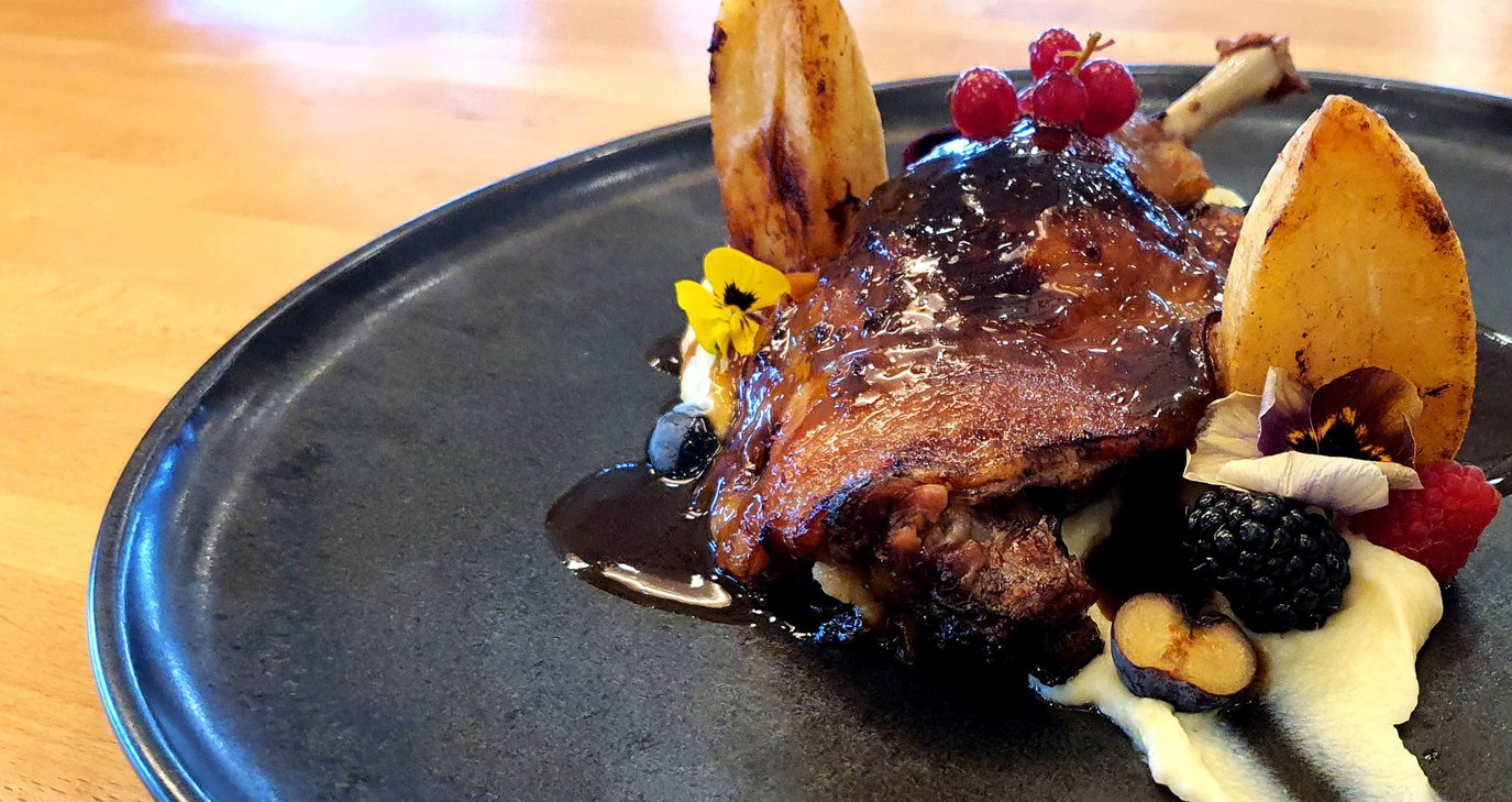 Μέχρι το τέλος του μήνα θα μπορείτε να απολαύσετε Πόδι Πάπιας Κονφί σερβιρισμένο με βελούδινο πουρέ Παστινάκι, φρέσκα Φρούτα του δάσους και σιγοψημένες Πατάτες.