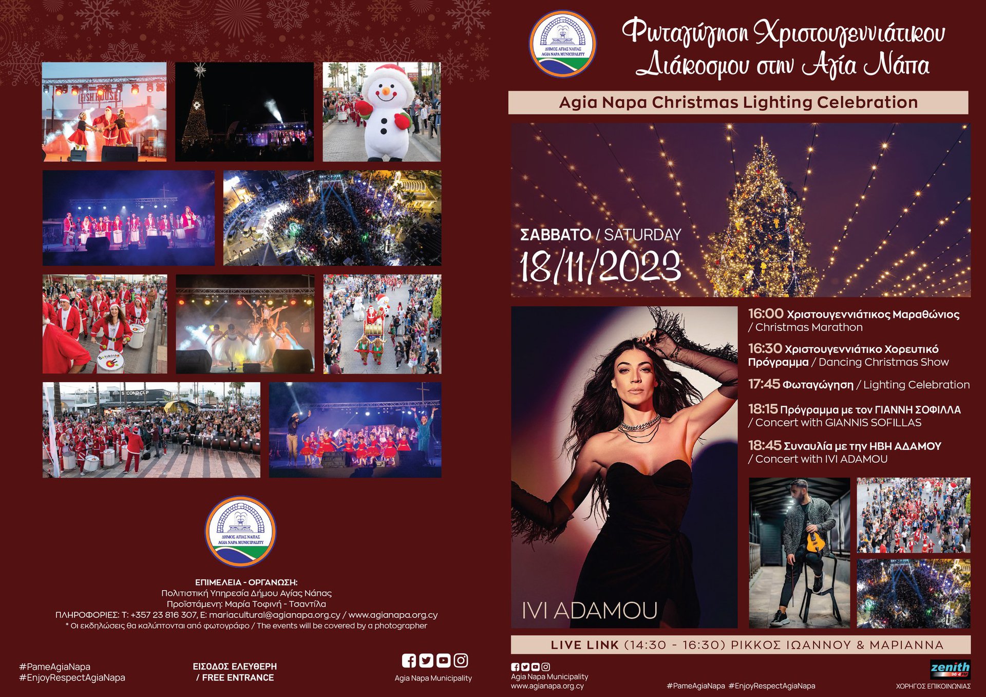 Η Φωταγώγηση Χριστουγεννιάτικου Διάκοσμου στην Αγία Νάπα, θα πραγματοποιηθεί το Σάββατο 18 Νοεμβρίου 2023 και επιφυλάσσει πολλές εκπλήξεις.