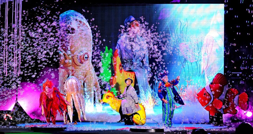 Εμπνευσμένο από το διάσημο “Cirque Du Soleil”, το Underwater Bubble Show είναι το πρώτο θέαμα με σαπουνόφουσκες εμπλουτισμένο με φανταστικά εφέ -λέιζερ, κανόνια χιονιού και καπνού, οπτικές ψευδαισθήσεις και προβολές βίντεο- που δίνει διαφορετικές θεατρικές διαστάσεις στην τέχνη της σαπουνόφουσκας.