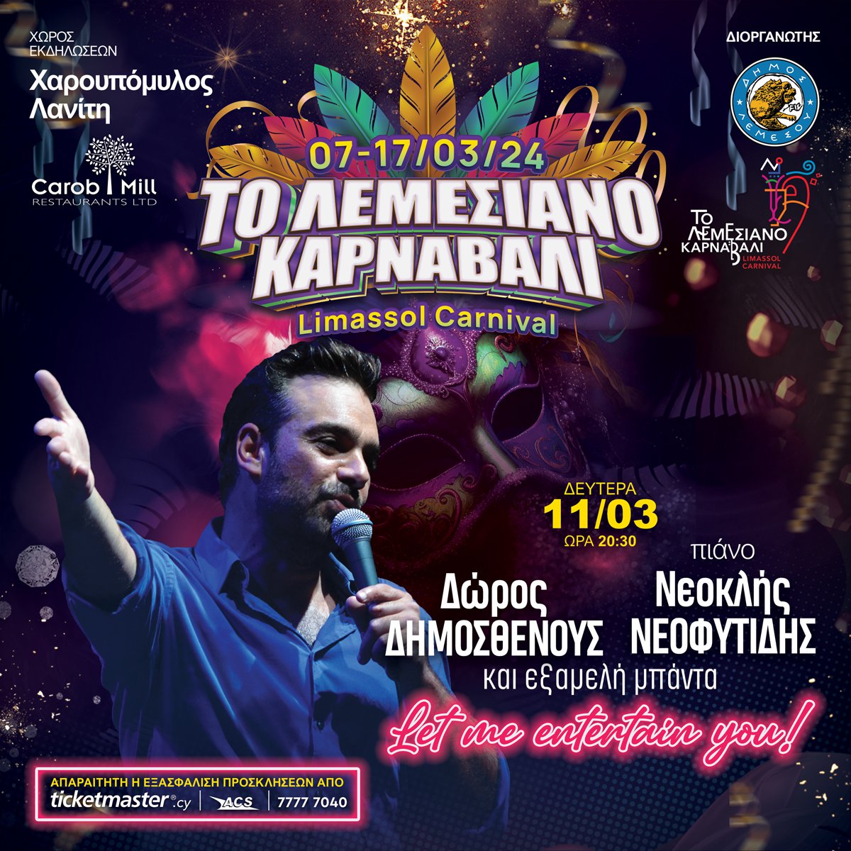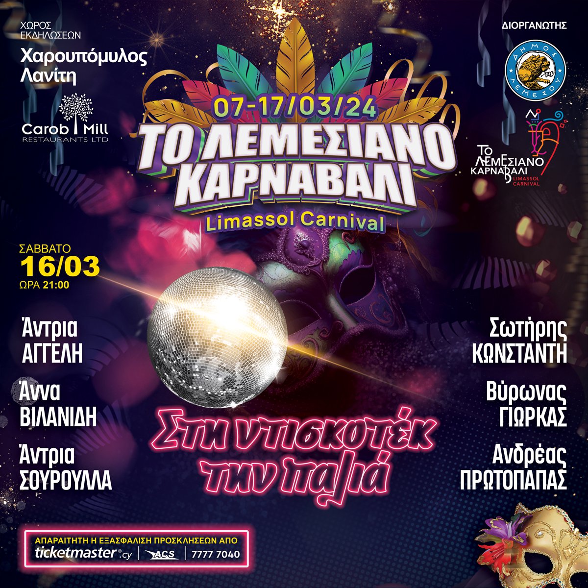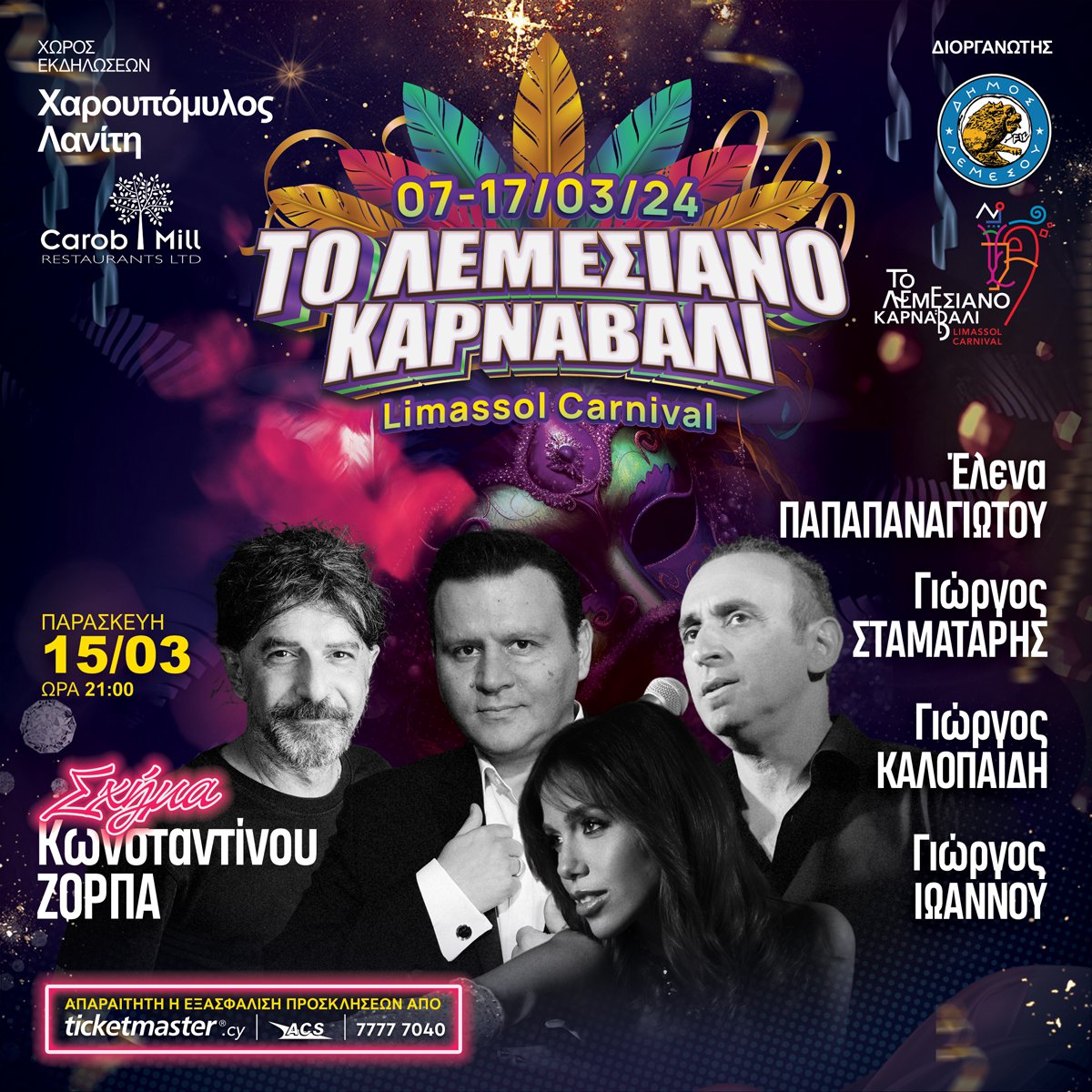 Το Λεμεσιανό Καρναβάλι 2024 υπόσχεται άφθονη διασκέδαση και τρελό ξεφάντωμα, φέρνοντας και φέτος κοντά σας μια πλειάδα εξαιρετικών καλλιτεχνών που θα σας ξεσηκώσουν όπως μόνο η Λεμεσός ξέρει.