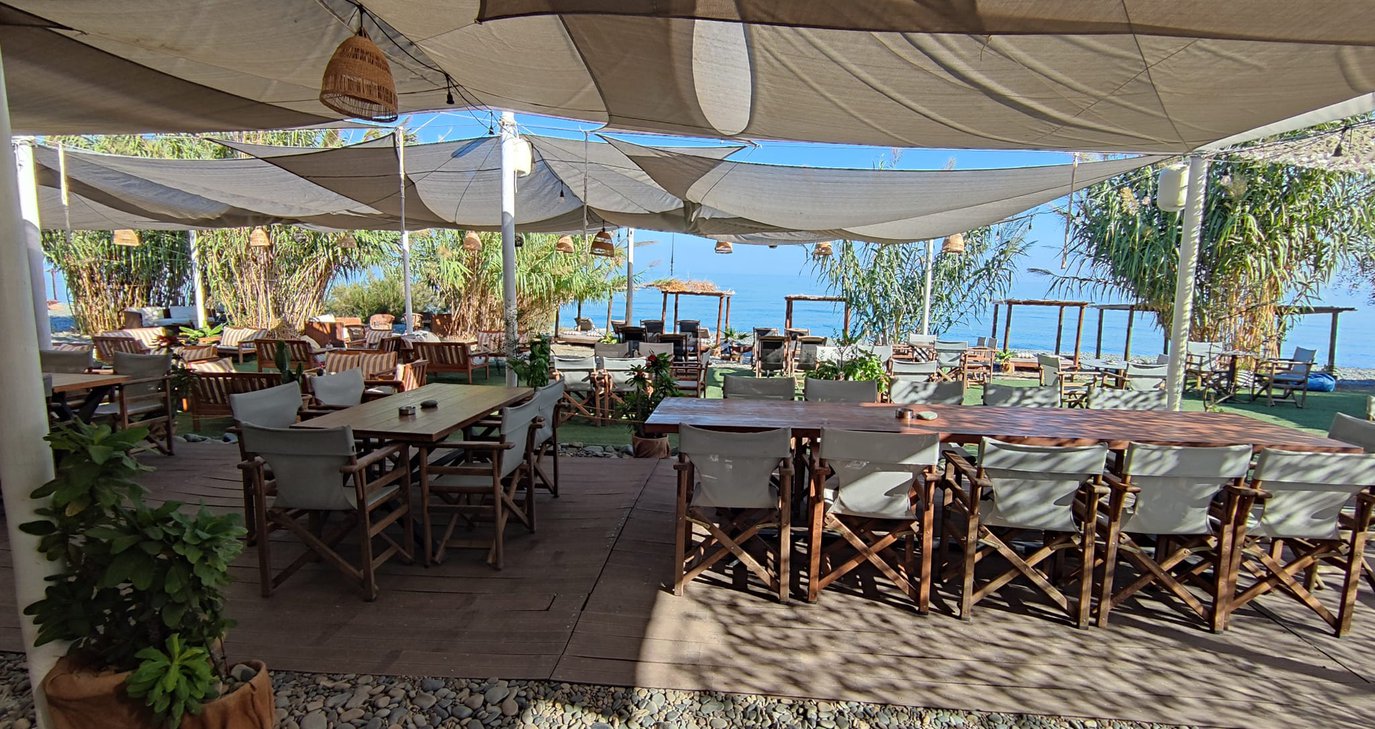 Πρόκειται για έναν πανέμορφο χώρο, χωρίς πολλά φτιασίδια, απόλυτα φυσικός, με ξαπλώστρες, γκαζέπο, ξύλινο μπαρ, καρέκλες και τραπέζια κάτω από ψάθινη τέντα.