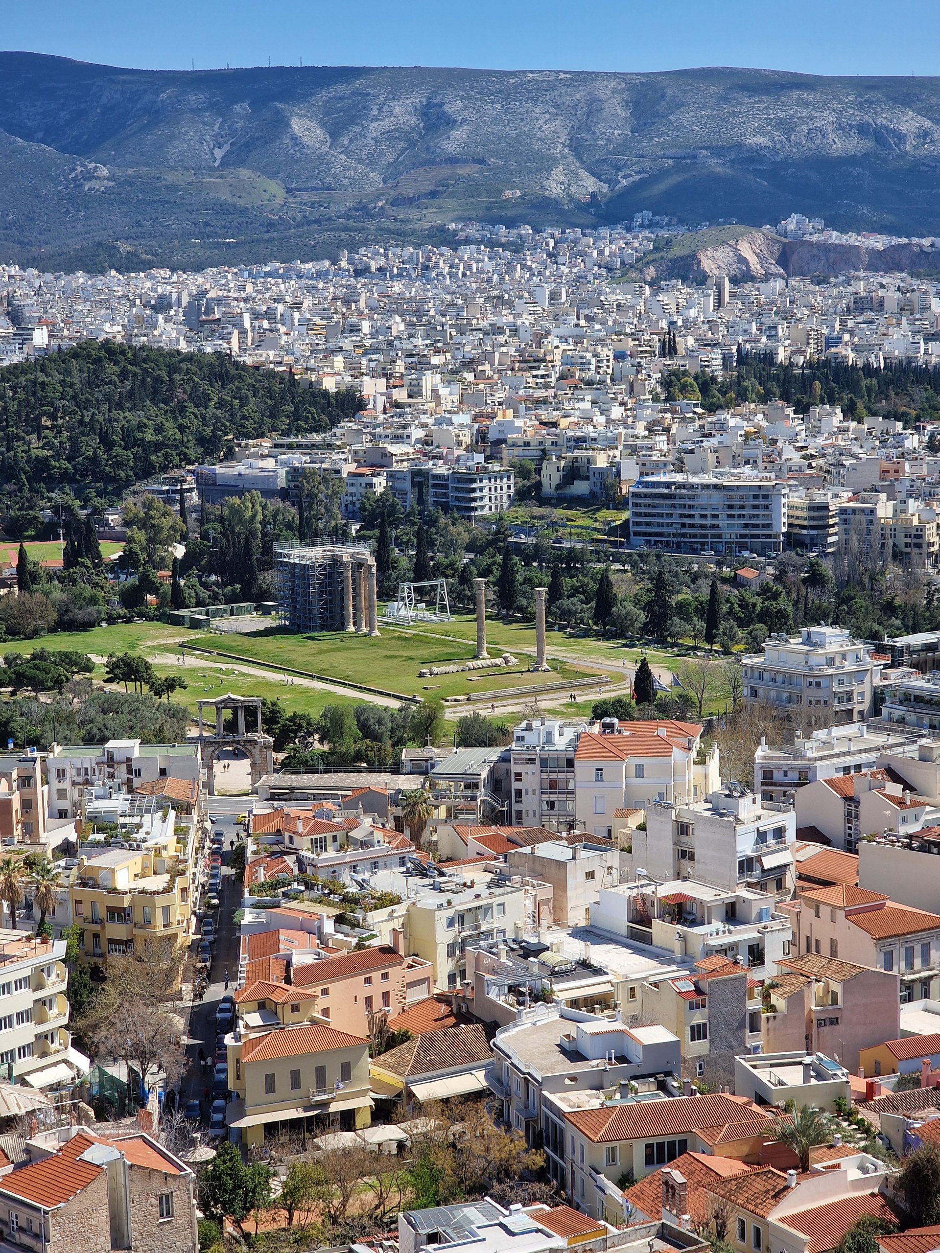 Καταλήγουμε στην τελευταία ανηφόρα πριν την Ακρόπολη, το καταλαβαίνεις από τους διάσπαρτους τουρίστες που αρχίζουν να συμφωνούν για την κατεύθυνση που θα ακολουθήσουν. Το πρώτο που δεν είχα υπολογίσει καθόλου ήταν η θέα που μπορείς να ξεκλέψεις ανάμεσα σπίτια και φυτά, το δεύτερο είναι το πόσος κόσμος θα περίμενε να μπει στην Ακρόπολη. Κινούνται γρήγορα ευτυχώς και πριν το καταλάβουμε είμαστε στην είσοδο. Μνήμες μηδέν. Πέρασμα από το Ηρώδειο με τουρίστες να βγάζουν αψυχολόγητες selfies με θέα το Ωδείο και την πόλη στο βάθος. Αυτή η θέα συνεχίζει να με συναρπάζει κα πάνω, γύρω από τον Παρθενώνα. Τα Προπύλαια γίνονται η αφορμή να αρχίζω να έχω εικόνες από την πρώτη μου επίσκεψη. Ο κόσμος υπερβολικά πολύς, με τον υπεύθυνο να προσπαθεί (και να καταφέρνει) να τον κρατήσει σε σειρά.