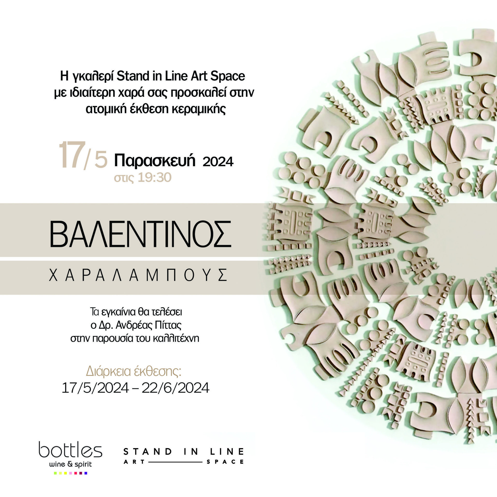 Ο Βαλεντίνος Χαραλάμπους είναι ένας από τους σημαντικότερους καλλιτέχνες της Κύπρου με σπουδαία διεθνή εικαστική δράση και πορεία. Στην έκθεση θα παρουσιαστούν συγκεντρωμένα, παλαιά και νέα έργα του Βαλεντίνου, ως μια γιορτή αφιερωμένη στην κεραμική δημιουργία του των τελευταίων εβδομήντα χρόνων.