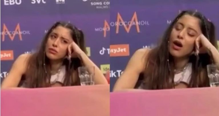 Στη συνέντευξη Τύπου η τραγουδίστρια της ελληνικής συμμετοχής δεν φάνηκε ενθουσιασμένη με το Ισραήλ στο ίδιο πάνελ με εκείνη, με αποτέλεσμα η αντίδραση της να έχει γίνει viral. Η ίδια χασμουριόταν και έκανε ότι βαριέται και νυστάζει.