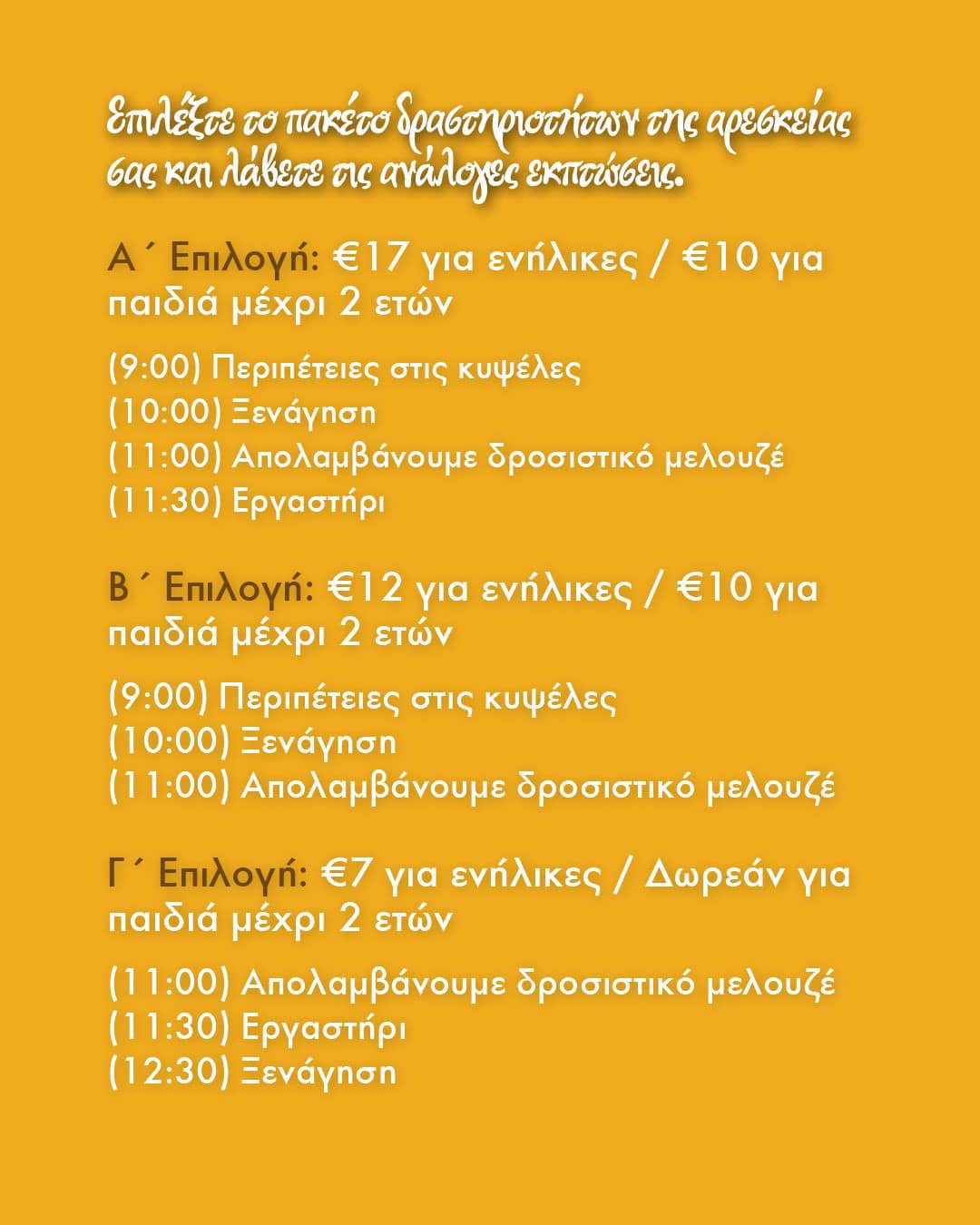 Σας περιμένουμε! (Οι κρατήσεις είναι υποχρεωτικές).