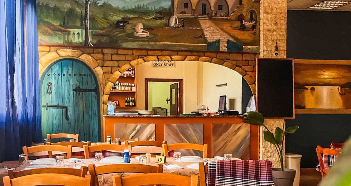 Μέσα στην ταβέρνα, κυρίαρχη θέση έχουν οι εντυπωσιακές τοιχογραφίες οι οποίες αναπαριστούν εικόνες της αγροτικής ζωής της περιοχής των περασμένων χρόνων όπως το γνωστό εξωκλήσι της Αγίας Θέκλης, παραδοσιακό κυπριακό αρχοντικό με καμάρες, ο φούρνο, ο μύλος και άλλα όμορφα στοιχεία του νησιού μας.