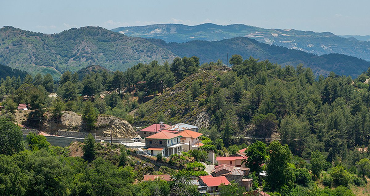 Απέχει 65 περίπου χιλιόμετρα βορειοδυτικά της πόλης της Λεμεσού και 85 περίπου χιλιόμετρα από τη πόλη της Λευκωσίας, ενώ συνδέεται με ελικοειδείς δρόμους, λόγω του φυσικού περιβάλλοντος, με τον Πρόδρομο στα ανατολικά, με τον Παλαιόμυλο στα νοτιοανατολικά και με τα χωριά Τρεις Ελιές και Καμινάρια στα νοτιοδυτικά.